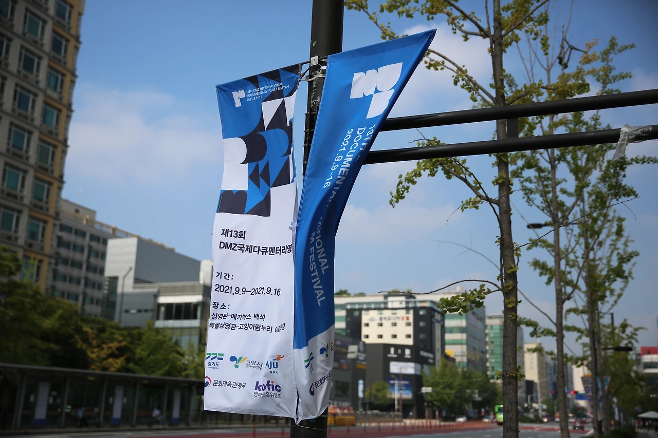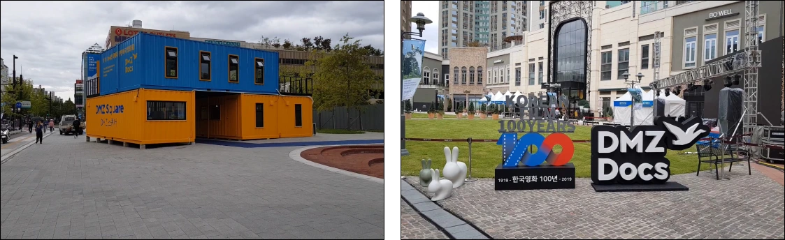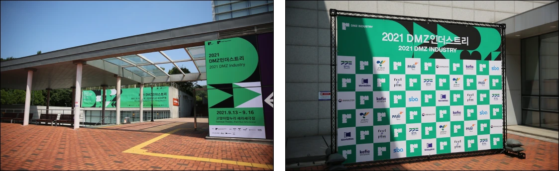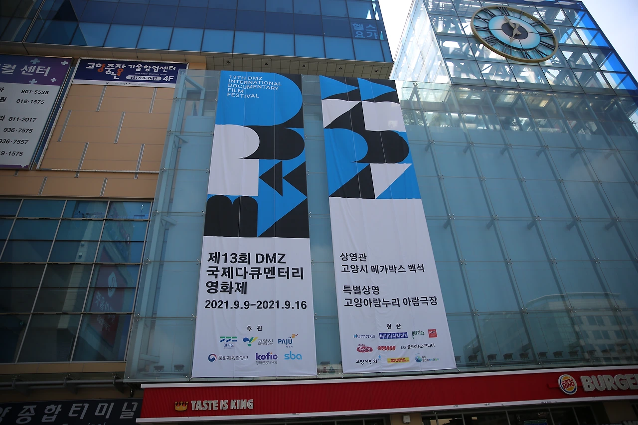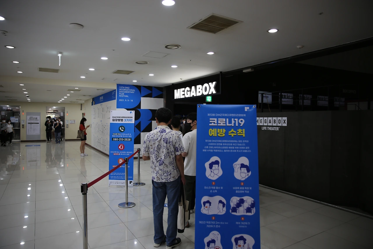 영화제는 고양시 터미널이 있는, 메가박스 백석에서 열렸는데요. 코로나 때문에 영화제가 축소된 것이 길가에서부터 느껴집니다. 코로나 전, 2019년 영화제에 있던 DMZ 스퀘어(안내데스크, 티켓 부스, 배지데스크가 있는 복합공간)과 DMZ플레이스(야외상영 및 공연)의 부재가 특히 아쉽습니다.