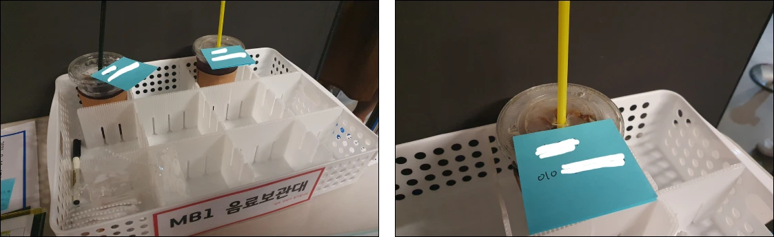 메가박스로 돌아와, 영화를 보러 들어갑니다. 커피는 밖에 맡기고 영화가 끝나면 다시 찾아가야 한다네요. 음료 보관이라니, 코로나가 참 신기한 문화를 많이 만들었습니다. 개인정보가 너무 공개적으로 적혀있는 거 아닌가 싶다가도, 오히려 노렸으면 저의 아이스 아메리카노를 노리지 번호를 노릴 사람은 없겠다는 자아 성찰이 듭니다.