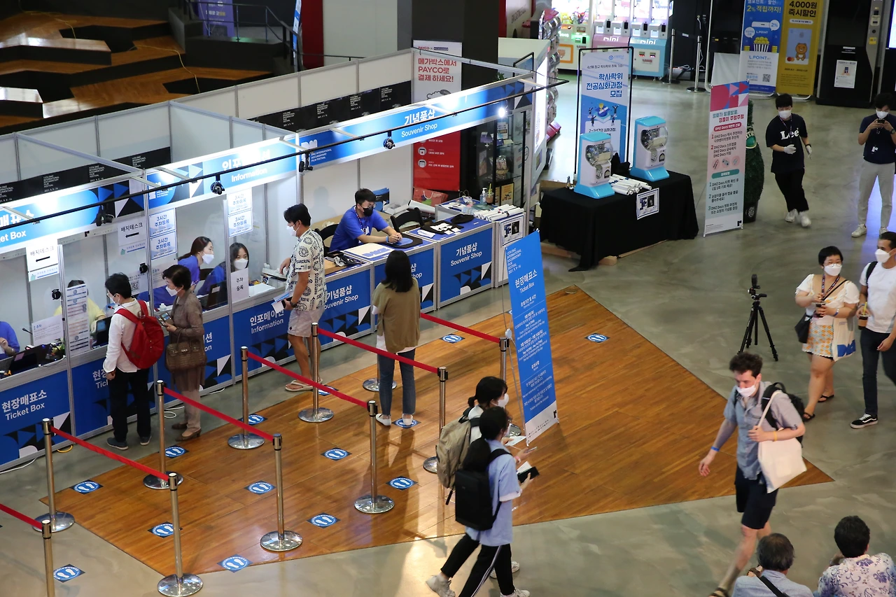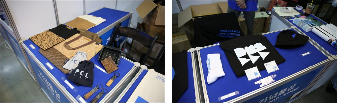 예매를 했으니 영화제를 둘러보겠습니다. 참새가 방앗간을 지나칠 수는 없는 법, 굿즈 코너에 가봅니다. 에코백, 키링, 파우치 등이 있군요.