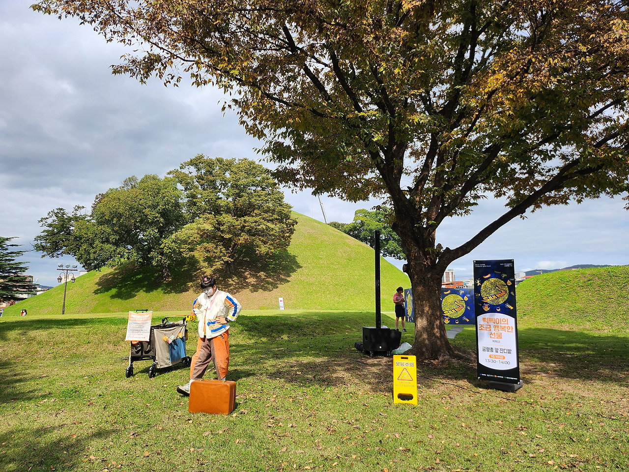 오늘은 경주 시내 관광을 하기로 했다. 쪽샘지구 임시주차장에 차를 세운 뒤, 위치상 가장 북쪽에 있는 금관총과 봉황대를 시작으로 남쪽 끝에 있는 국립경주박물관까지 천천히 걸었다. 산책하기에 좋은 따뜻한 가을 날씨였다.