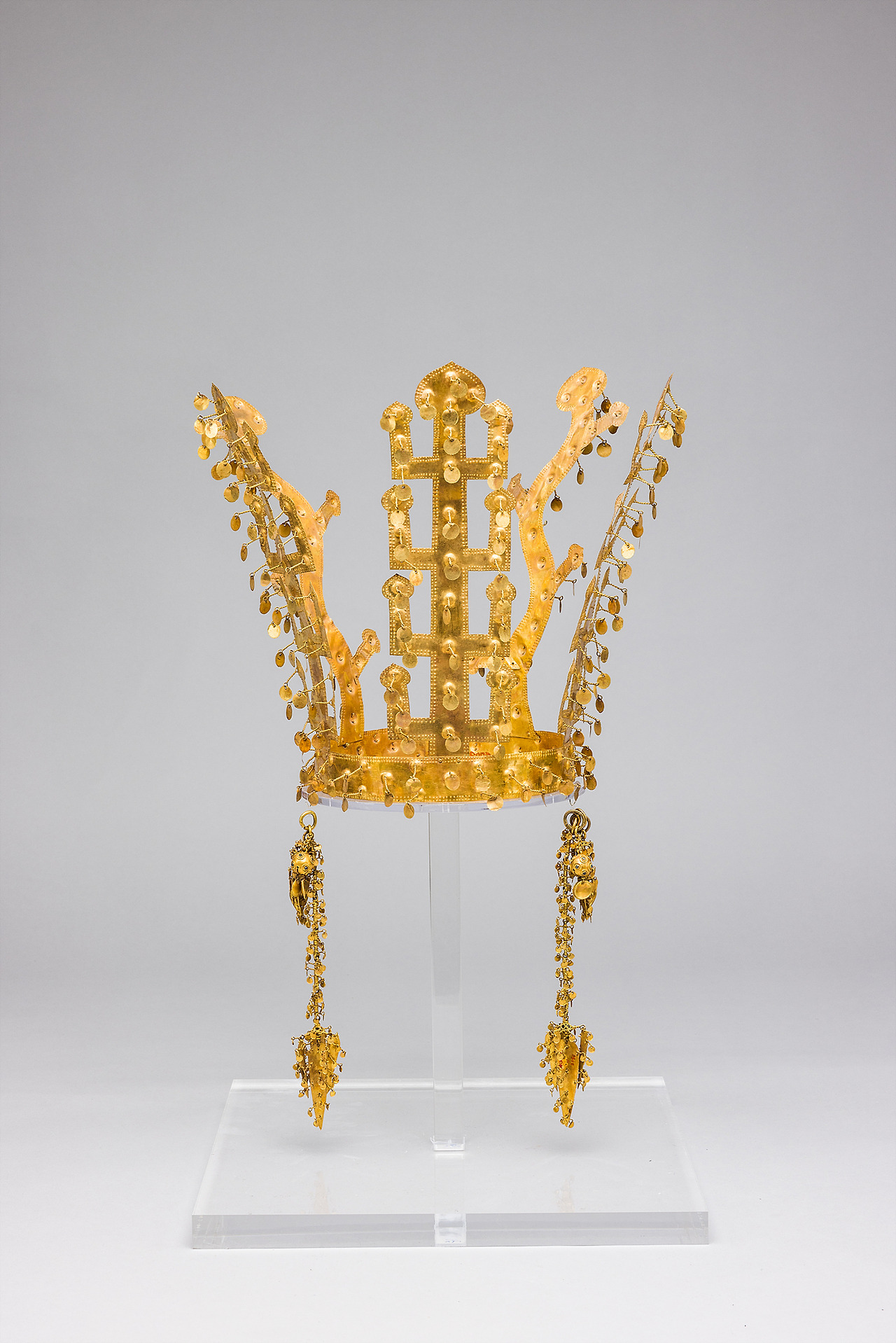 황남대총 북분 금관은 여섯 개 중 가장 화려하다. 머리띠 부분에 드리운 장식이 양쪽으로 세 줄씩 있으며, 여성의 금관으로 확인되고 있다.