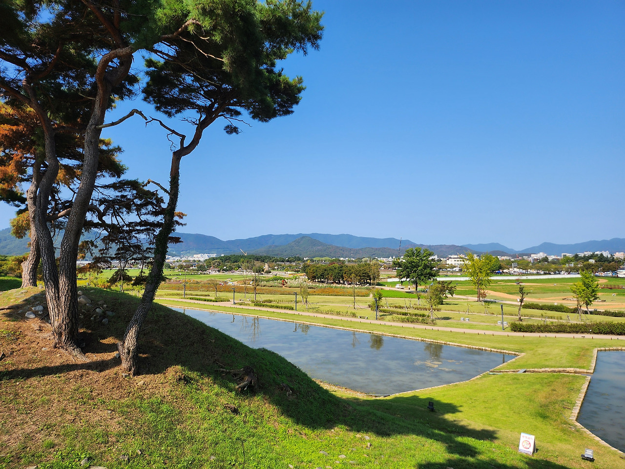 천마총에서 가까운 대릉원 주차장은 외부 행사로 주차가 어려워 차를 돌리다가 동궁과 월지 주차장에 차를 댔다. 그곳에서 대릉원까지는 걸어서 이십분 정도 걸린다. 대릉원으로 걸어가는 길에, 어제 궁금해했던 월성을 지나기로 했다.
