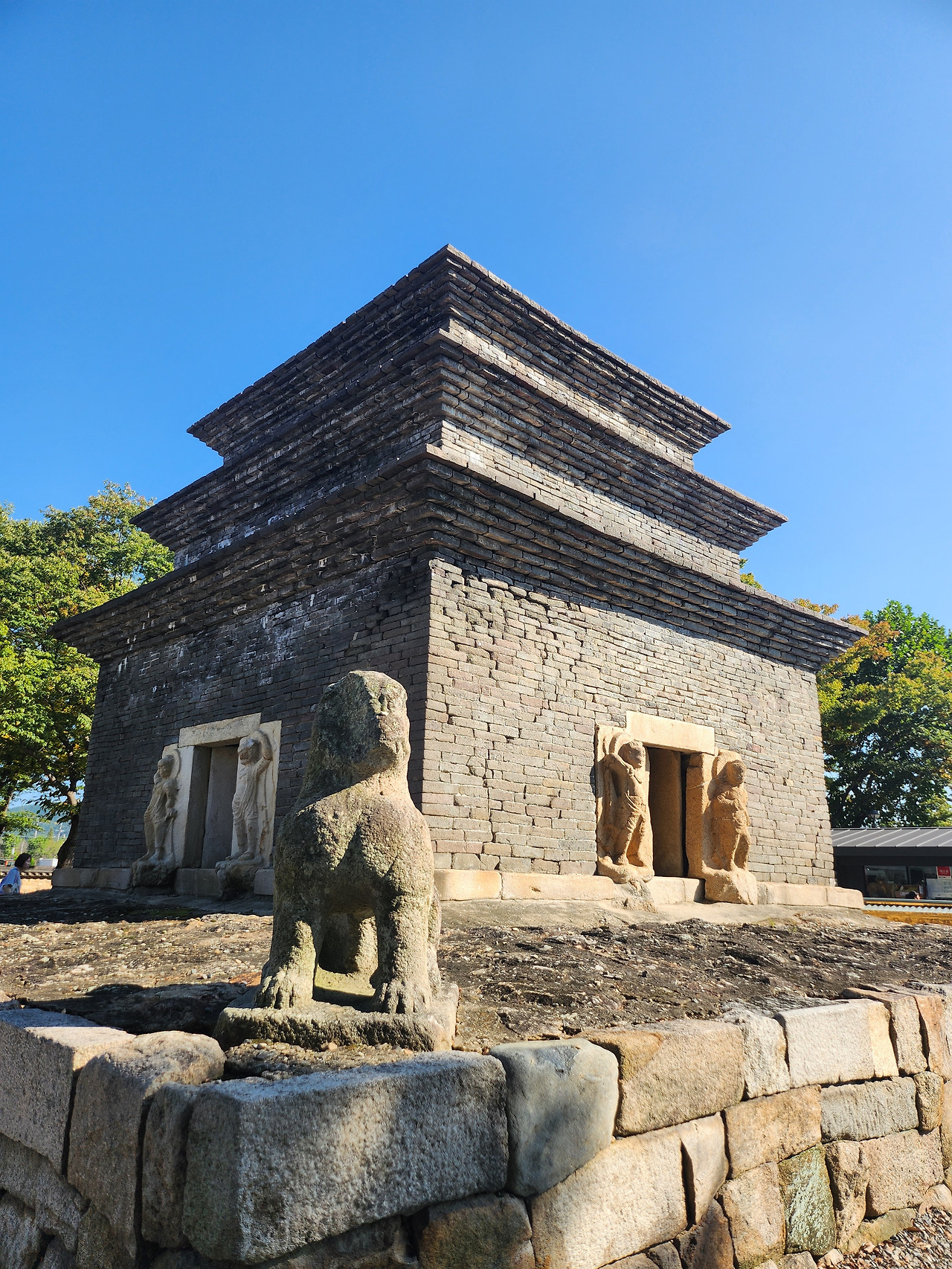 다시 차를 타고 분황사로 이동했다. 분황사는 신라 선덕여왕 때 창건된 유서 깊은 사찰로, 원효대사와 자장법사도 머물렀던 곳이다. 절 안에는 국보로 지정된 모전석탑이 있다. 이 탑은 통일신라 이전에 세워진 대표적인 전탑 양식으로, 지금은 3층까지만 남아 있지만 원래는 7층 또는 9층에 달했을 것으로 추정된다. 현존하는 탑 가운데 가장 오래된 것 중 하나다.