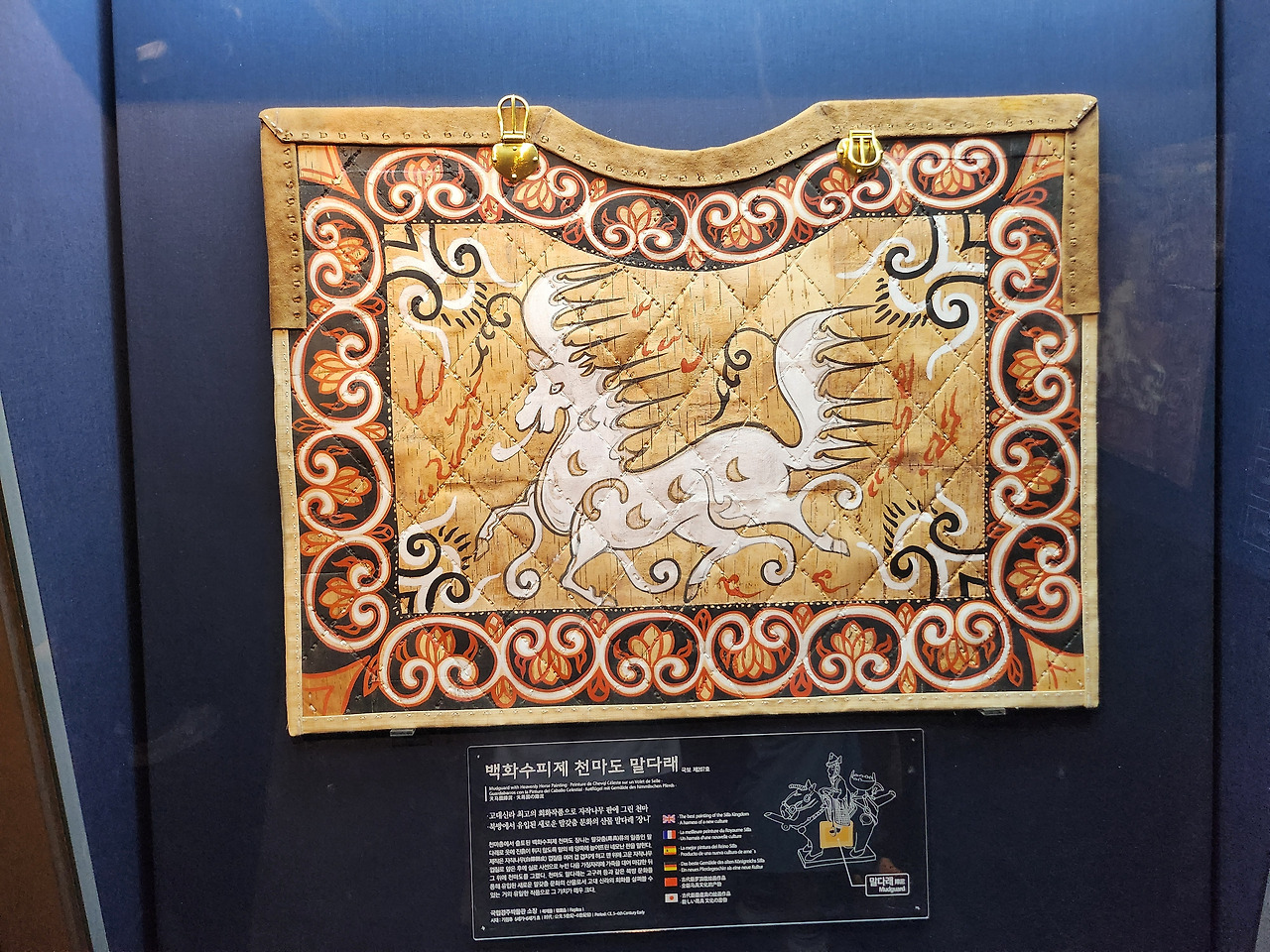 하지만 황남대총은 남북 120미터, 동서 80미터, 높이 23미터에 이르는 거대한 무덤으로, 당시 발굴 경험이 부족했던 조사단에게는 벅찬 대상이었다. 이에 대안으로 바로 옆의 중형 고분을 시험 발굴하게 되었고, 여기서 놀라운 유물들이 쏟아져 나왔다. 금관과 관모, 금제 허리띠, 목걸이, 유리잔, 환두대도 등 화려한 부장품들 속에서, 특히 주목받은 것은 말다래에 그려진 천마도였다.