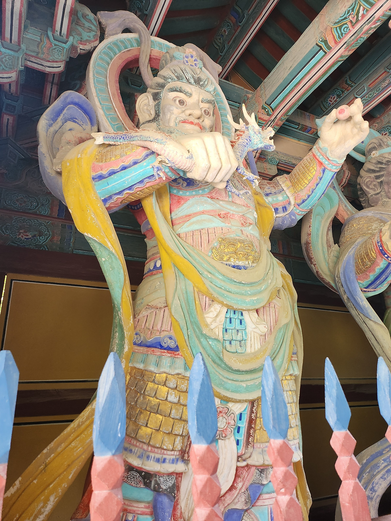 입구에서 본 사천왕상이 용의 입에서 여의주를 빼앗는 듯한 자세가 재미있었다. 그리스로마 신화 헤라클레스가 중앙아시아를 거쳐 들어오면서 한국에서 사천왕이나 금강역사가 되었다. 헤라클레스 12과업 중 비슷한 이미지를 찾아보니 물뱀 휘드라와 싸우는 장면이 비교적 비슷한 것 같다.