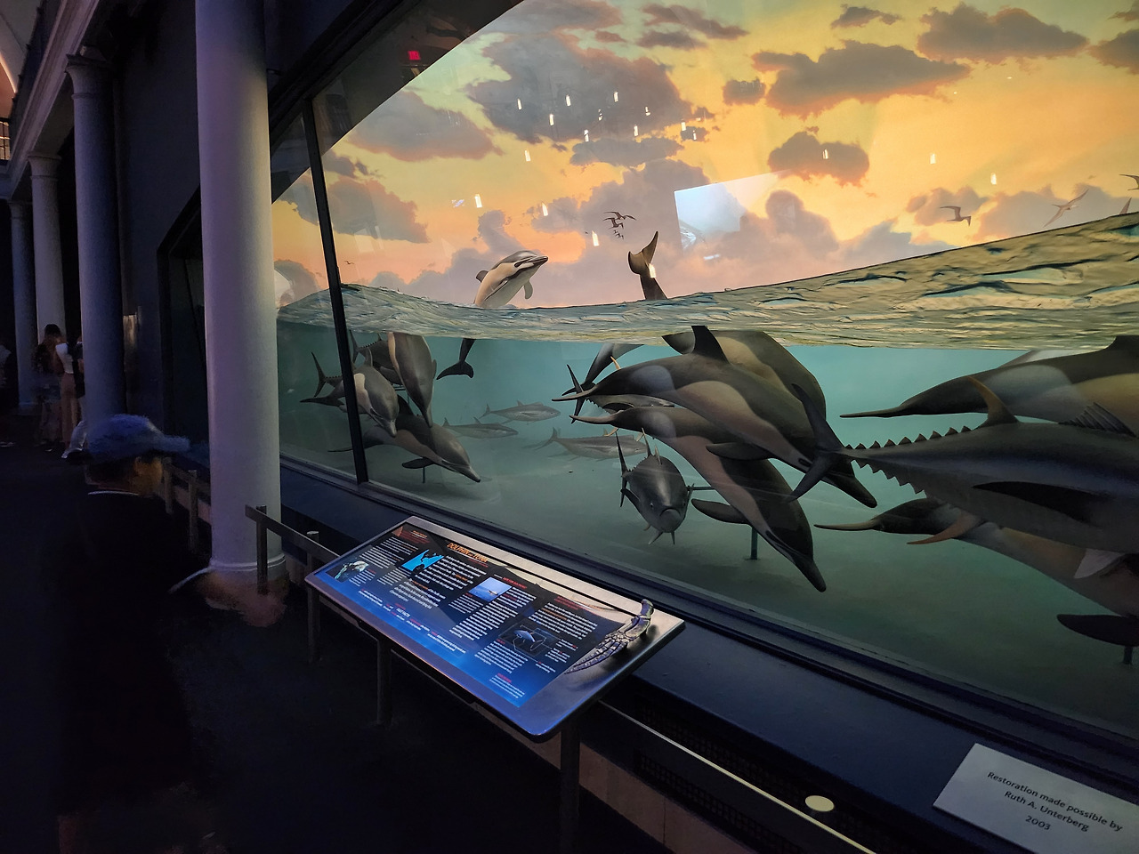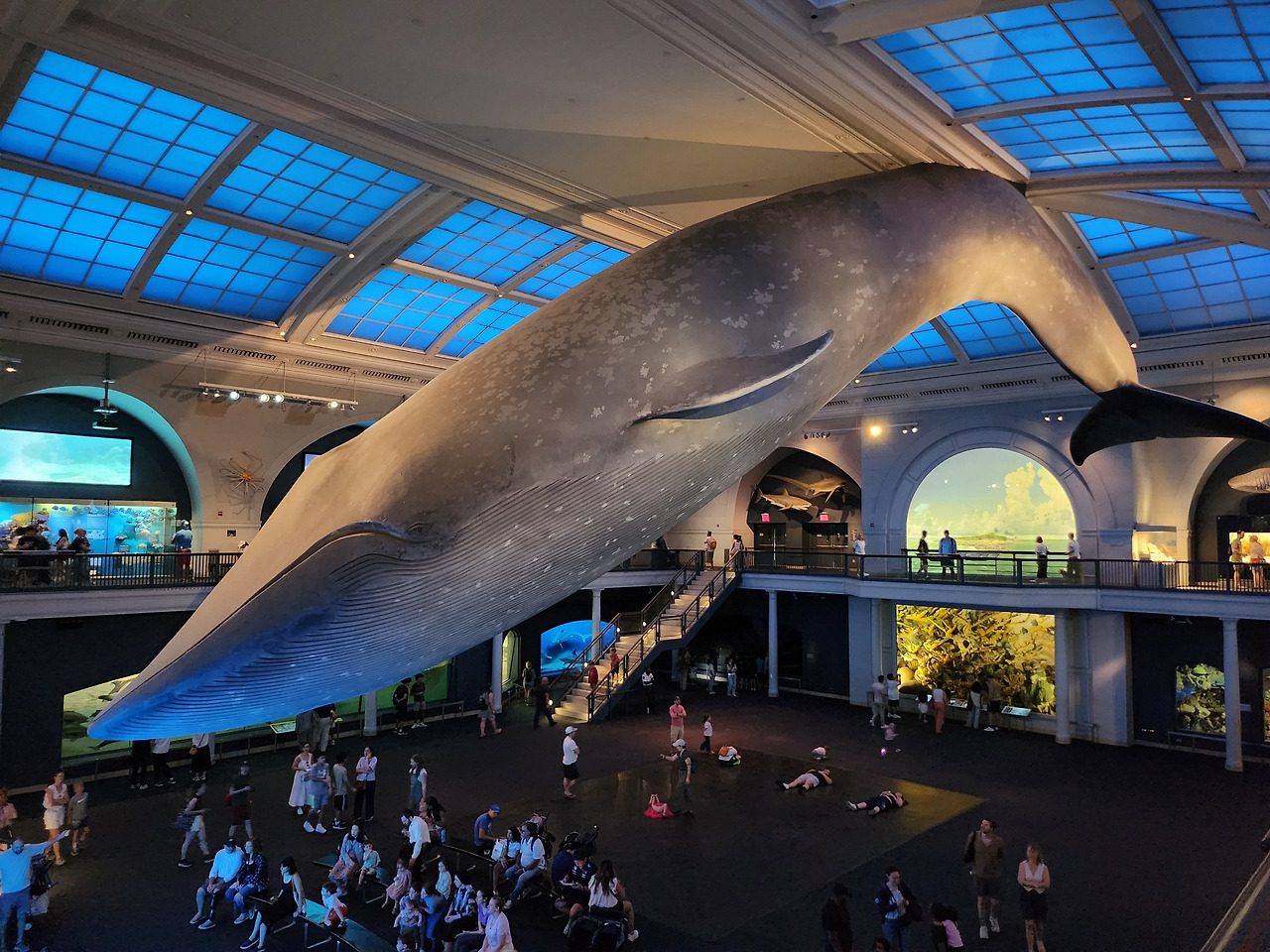 해양생물관의 하이라이트는 커다란 홀을 가득 채우고 있는 29m의 거대한 긴수염 흰고래이다. 1925년에 잡혔던 고래를 복제했다고 한다. 지구상에서 가장 큰 동물이다.