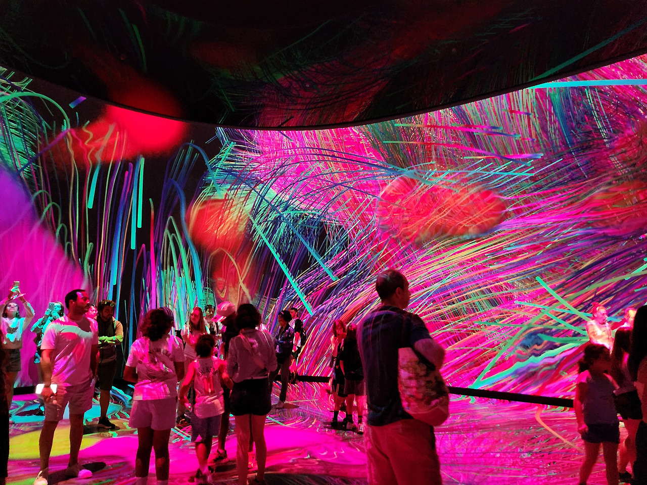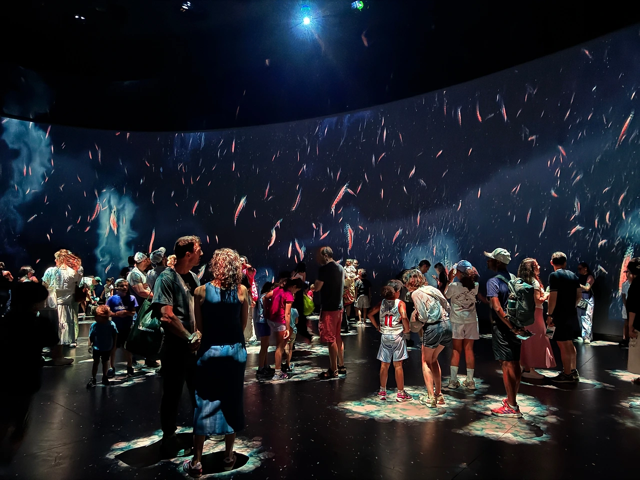 특별전시 중에 '보이지 않는 세계'가 재미있었다. 이 전시는 지구상에 존재하지만 우리 눈에는 보이지 않는 수많은 미세 기관과 그들의 세계를 조명한다. 촘촘한 텍스트와 설명 패널이 이어지는 초입부를 지나자, 전시의 하이라이트인 360도 영상관이 나타났다. 요즘 유행하는 몰입형 미디어 아트 공간이다.