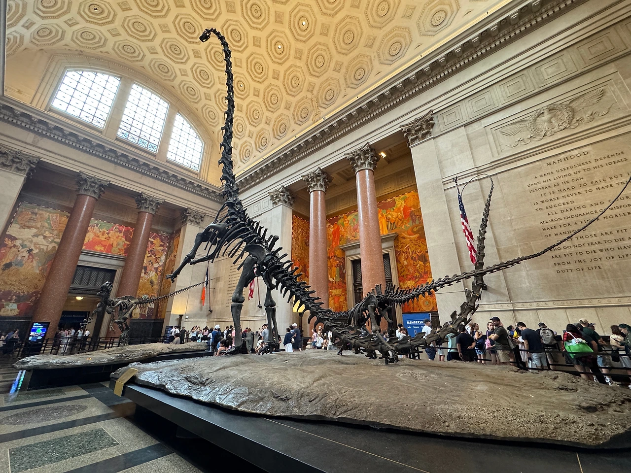 클래식한 건물 로비에 들어서면 거대한 초식공룡뼈, 바로사우루스가 가장 먼저 눈길을 끈다.