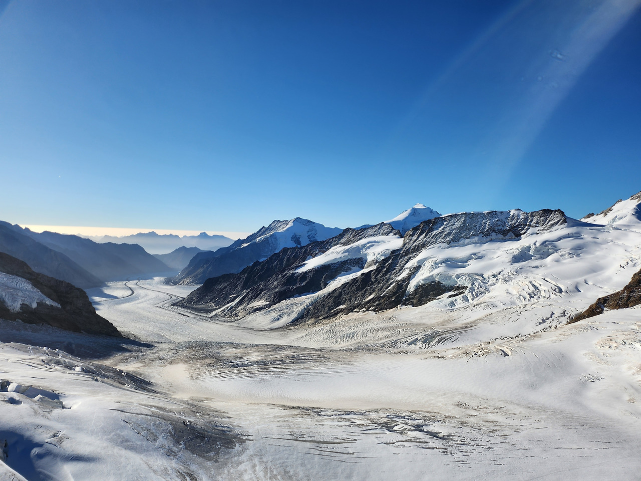 남편은 아들이 스위스를 가고 싶어 해서 함께 왔을 뿐, 본인이 스위스를 여행하고 싶다는 생각을 한 적은 없었다. 그런데 융프라우요흐가 너무 좋았다고 한다. 융프라우요흐는 호불호가 좀 갈리는데 이것은 날씨 영향이 크다. 이 날 구름 한 점 없었다.