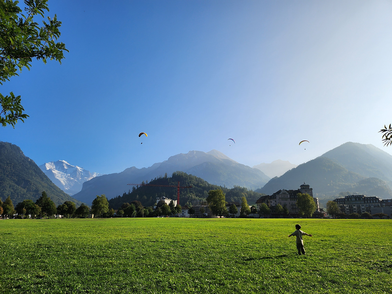 피곤해서 점심은 숙소 식당에서 먹기로 했다. 인터라켄 유스호스텔 식당도 괜찮은 맛집이라고 한다. 늦은 점심을 먹고 인터라켄 시내를 산책하며 공원에서 패러글라이딩 착륙하는 것을 구경했다.
