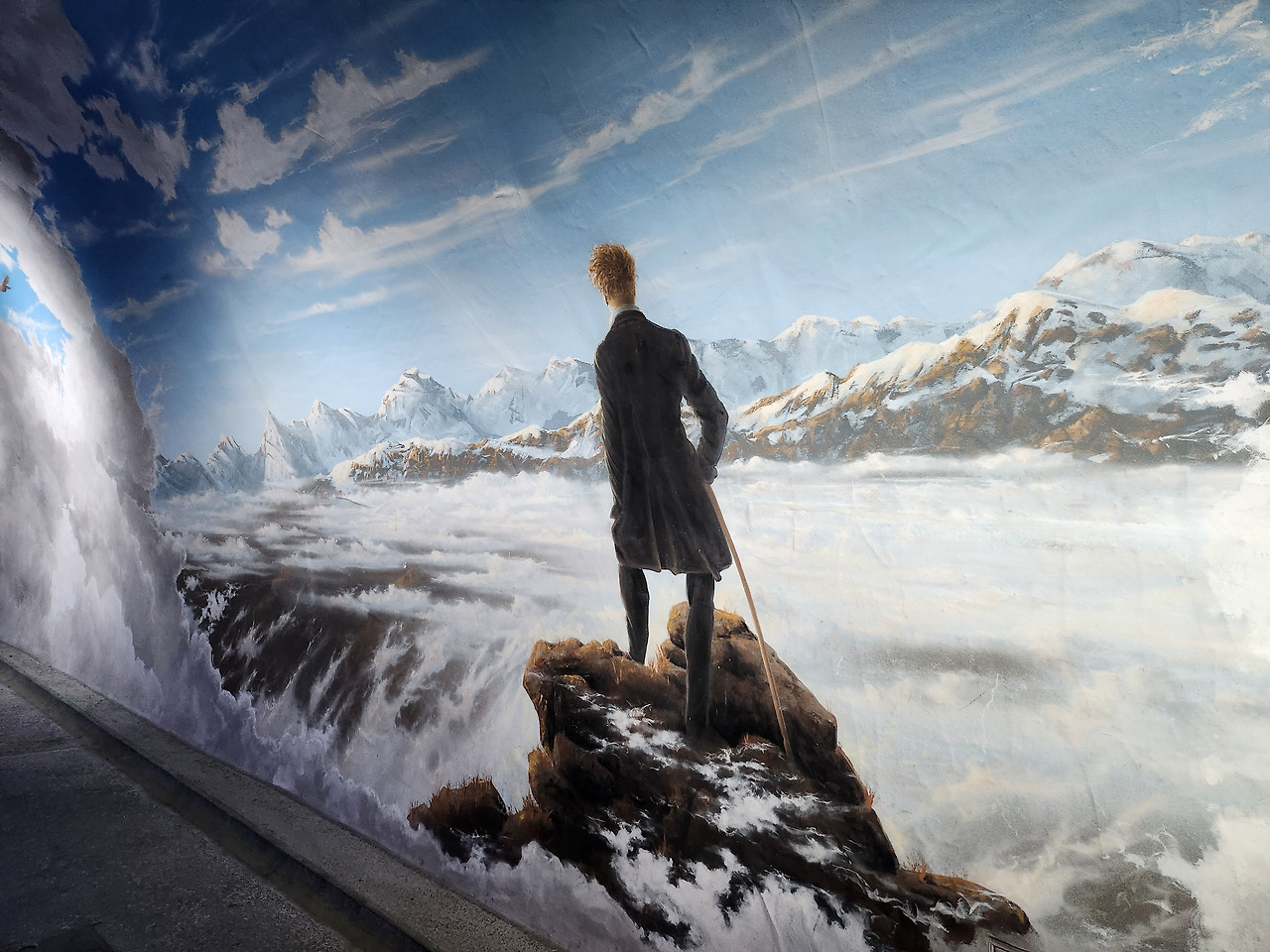 독일 낭만주의 화가 프리드리히의 '안개 바다 위의 방랑자'가 이동 통로 벽에 있었다. 이 작품을 융프라우와 관련지어 생각해 본 적이 없었는데 이곳과 너무 잘 어울린다.