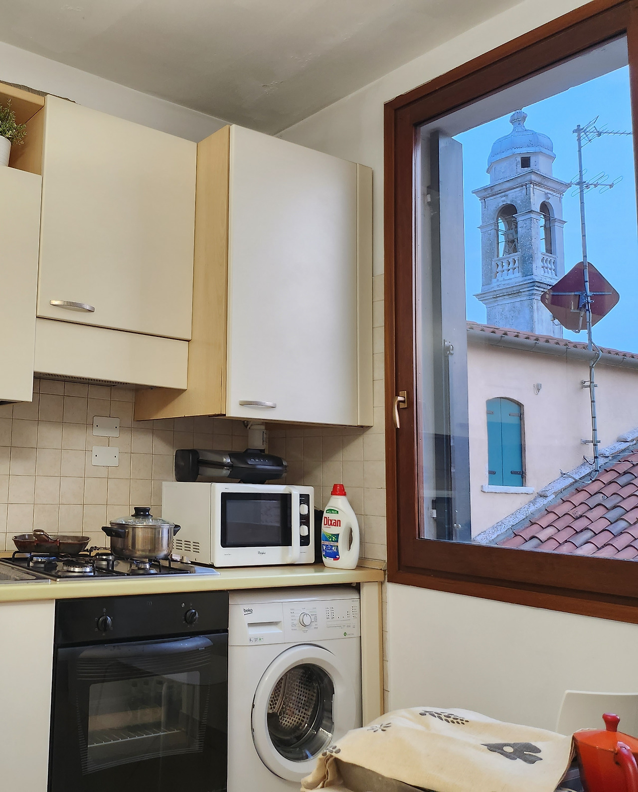 숙소 창밖으로 성당 종탑이 보인다. 시간마다 울리는 종소리가 이국적이다.