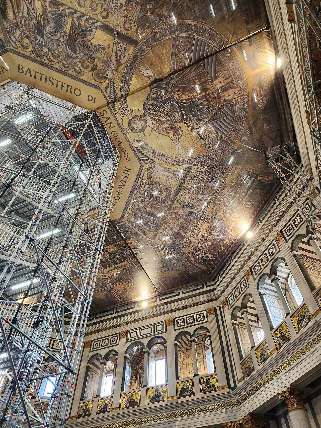 산 조반니 세례당은 작아서 한번 둘러보면 끝이다. 천장화가 볼 만하다는데 복원 중이어서 아이가 실망했다. 유럽은 언제 어디를 가더라도 늘 복원 중인 곳이 있는 것 같다. 세례당의 기베르티 청동문은 오페라 박물관으로 옮겨져 있고, 원래 위치에는 복제품이 설치되어 있다.