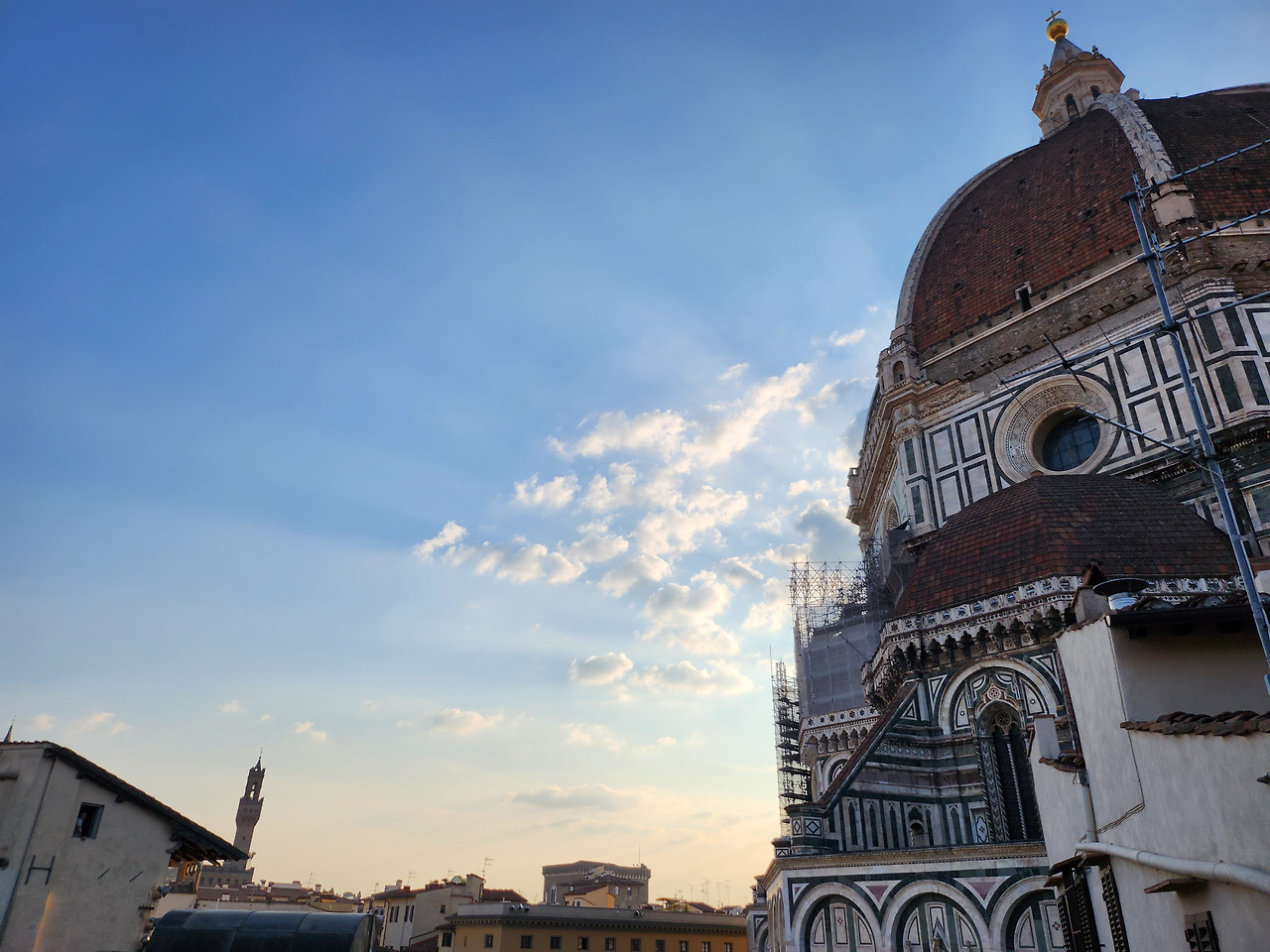 박물관 안내도에 '브루넬레스키의 테라스'라고 적힌 표시판을 따라 한참 올라가니, 브루넬레스키 돔이 한눈에 들어오는 박물관 옥상이 나왔다. 석양이 지고 있었다. 이 층집 창가에 한 아저씨가 창을 열고 두오모를 바라보며 담배를 피우고 있었다. 아름다운 풍경과 무심한 일상이 교차하는 묘한 순간이었다.
