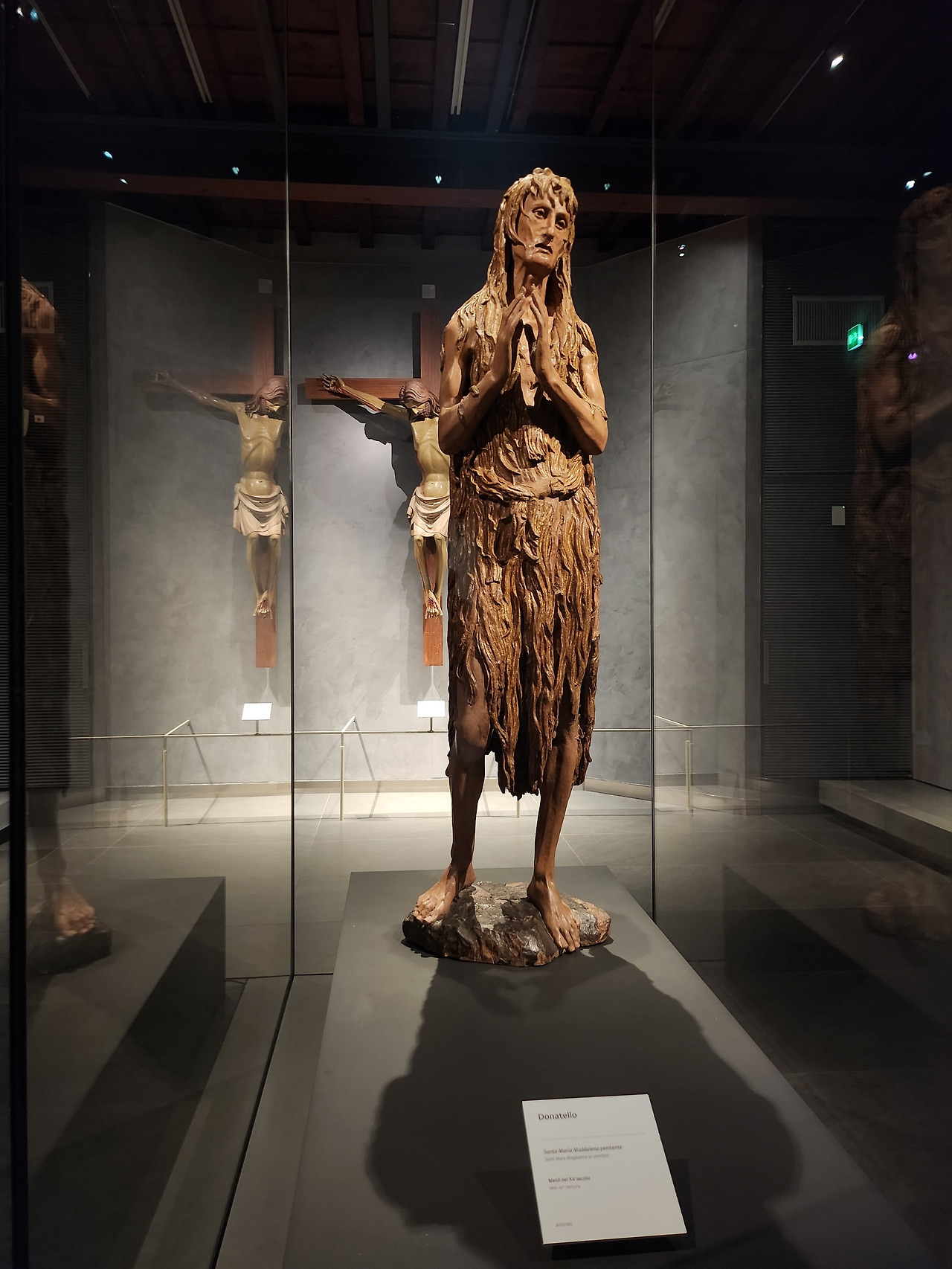 이 박물관에서 가장 유명한 작품 중 하나인 도나텔로의 막달라 마리아 상. 이 조각을 처음 본 남편과 아이도 꽤 인상적이라고 했다. 갑자기 현대 작품을 만난 듯했다.