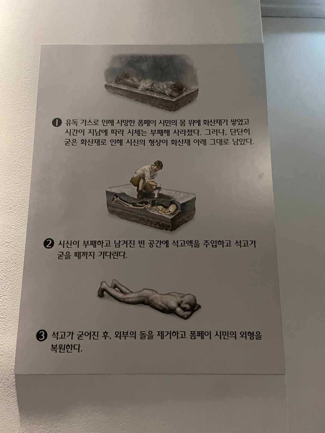폼페이에서 도시만큼이나 인상적이었던 것은 폼페이 시민 석고 캐스팅이었다.