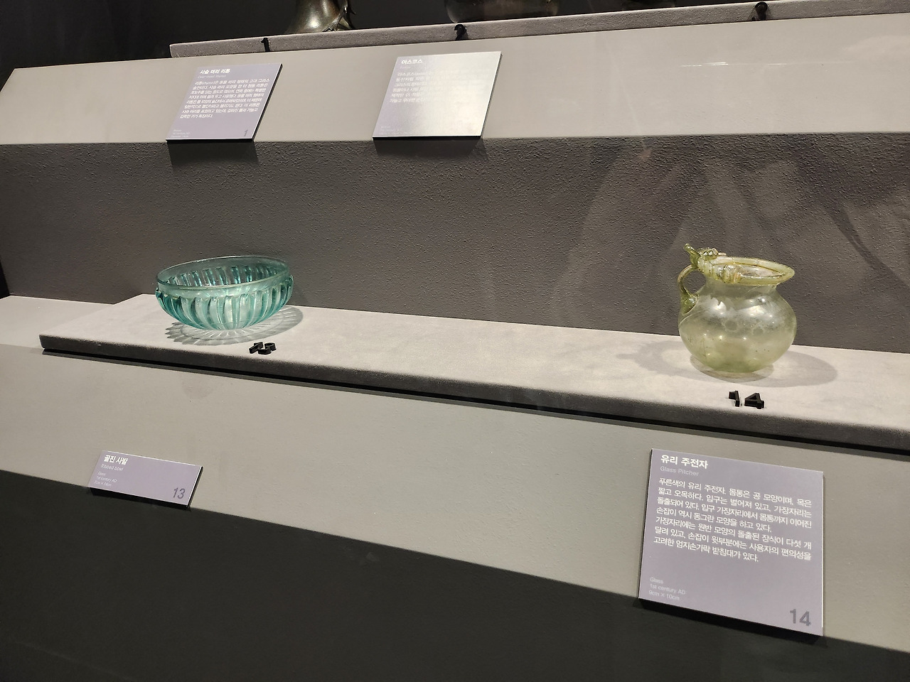 도슨트 설명 중 유리 주전자를 신라시대 황남대총 유리잔과 연결해서 당시 우리나라와 로마와의 교류에 대해 말씀하셨다. 국립중앙박물관 봉수 유리병을 말씀하시는 것 같았다. 집에 와서 사진을 다시 비교해 보니 손잡이 모양도 비슷한 것 같다.