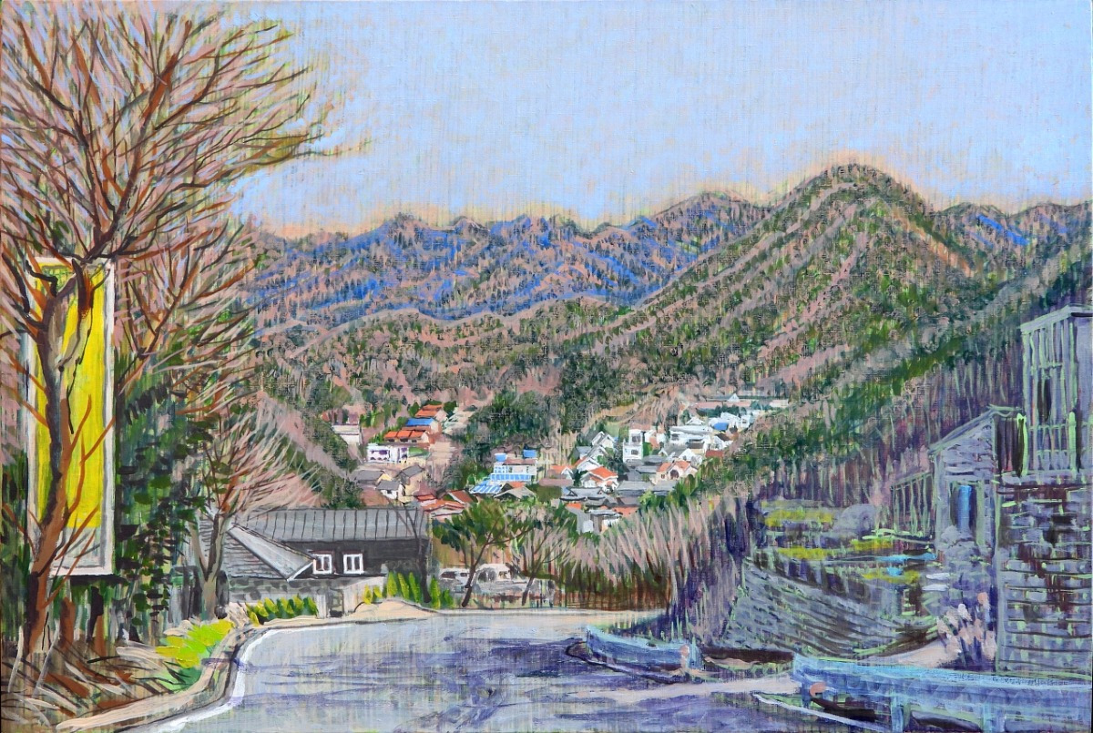 작가는 37년 전 그렸던 양평 풍경화를 같은 장소에서 다시 그려서 변화된 모습을 새롭게 반영하고 있다.