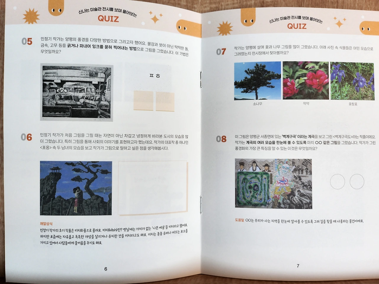 어린이 전시관람 프로그램어린이용 전시관람 프로그램도 잘 되어 있다. 입구에서 브로셔를 챙겨서 퀴즈를 풀면서 다니면 더 재미있게 관람할 수 있다. 우리는 미술관을 떠나면서 알게 되어서 아이가 많이 아쉬워했다.