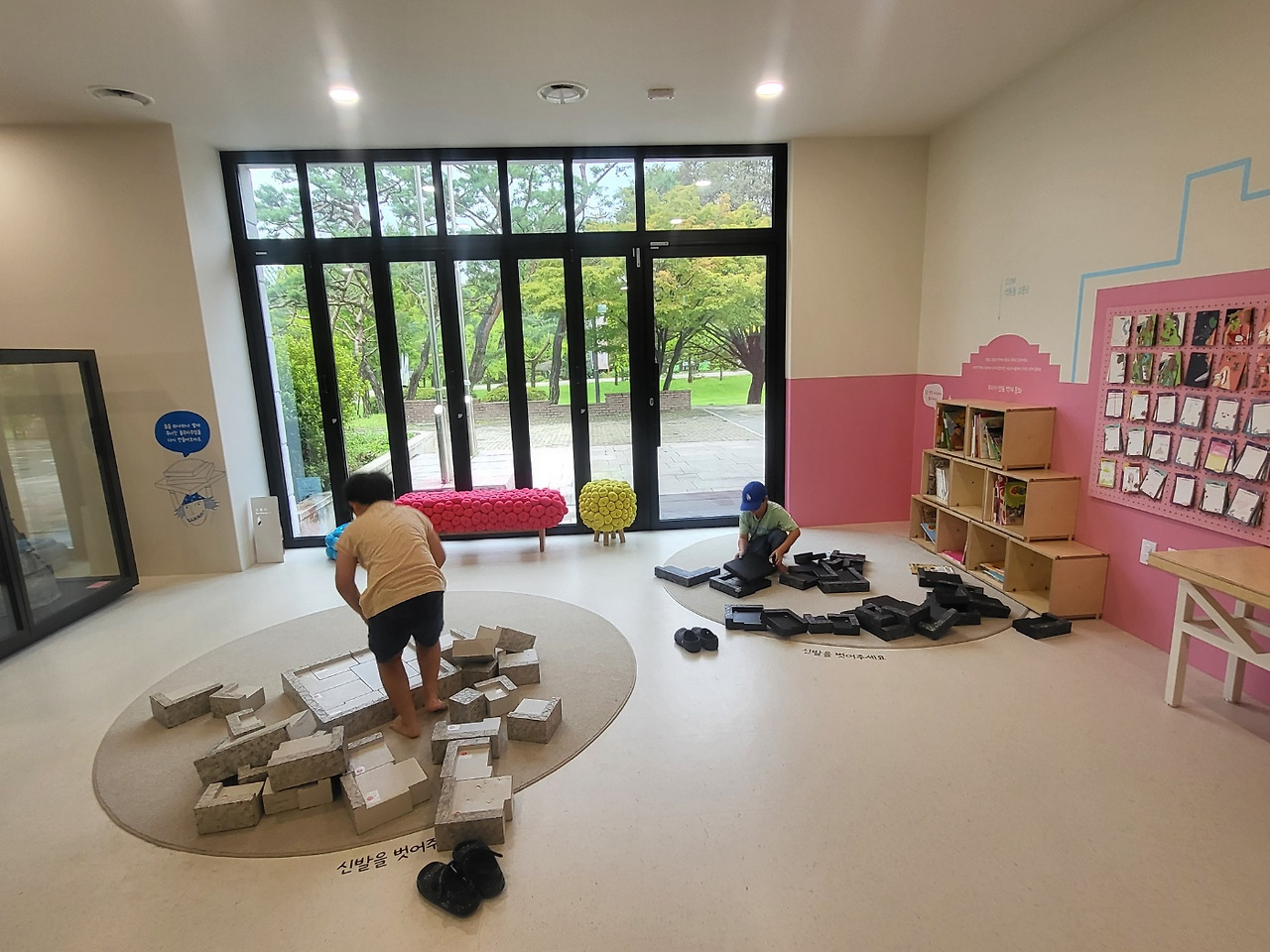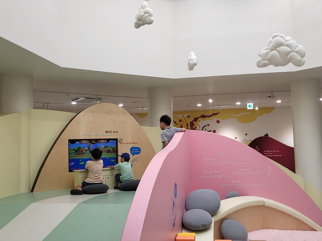 어린이 박물관답게 파스텔 톤 위주지만 유치하지 않다. 핑크색 벽도 다른 색상과 잘 어울린다.
