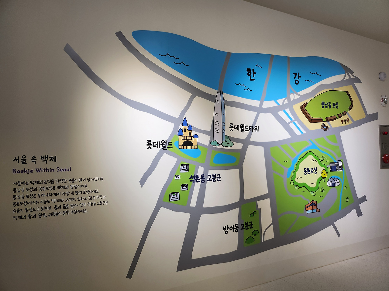 서울 속 백제, 그림지도가 귀엽다. 프린트한 시트지를 부착하고 그 위에 포맥스 스카시로 입체감을 주었다.