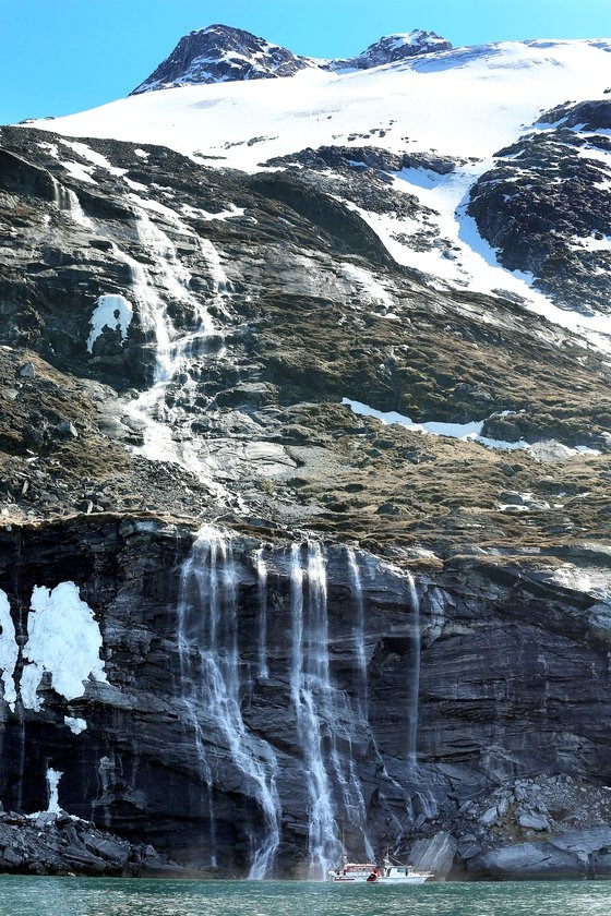 눈이 물로 변하는 풍경이다. 누크 주변 승미치악산에는 만년설이 녹은 얼음물이 모여 100미터 절벽 아래로 떨어지는 폭포가 있다. 나이아가라 폭포처럼 큰 물보라가 장관을 이루어 관광산업이 되었다.