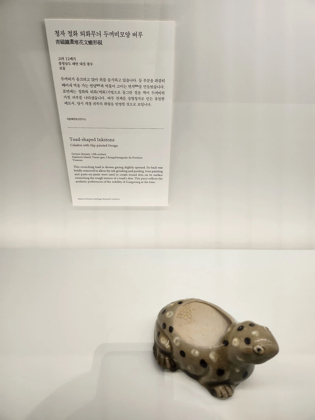 귀여운 두꺼비모양 벼루이다. 벼루가 무엇인지 모르는 아이를 위해 일반적인 벼루 사진을 찾아 보여주며 비교해 줬다.
