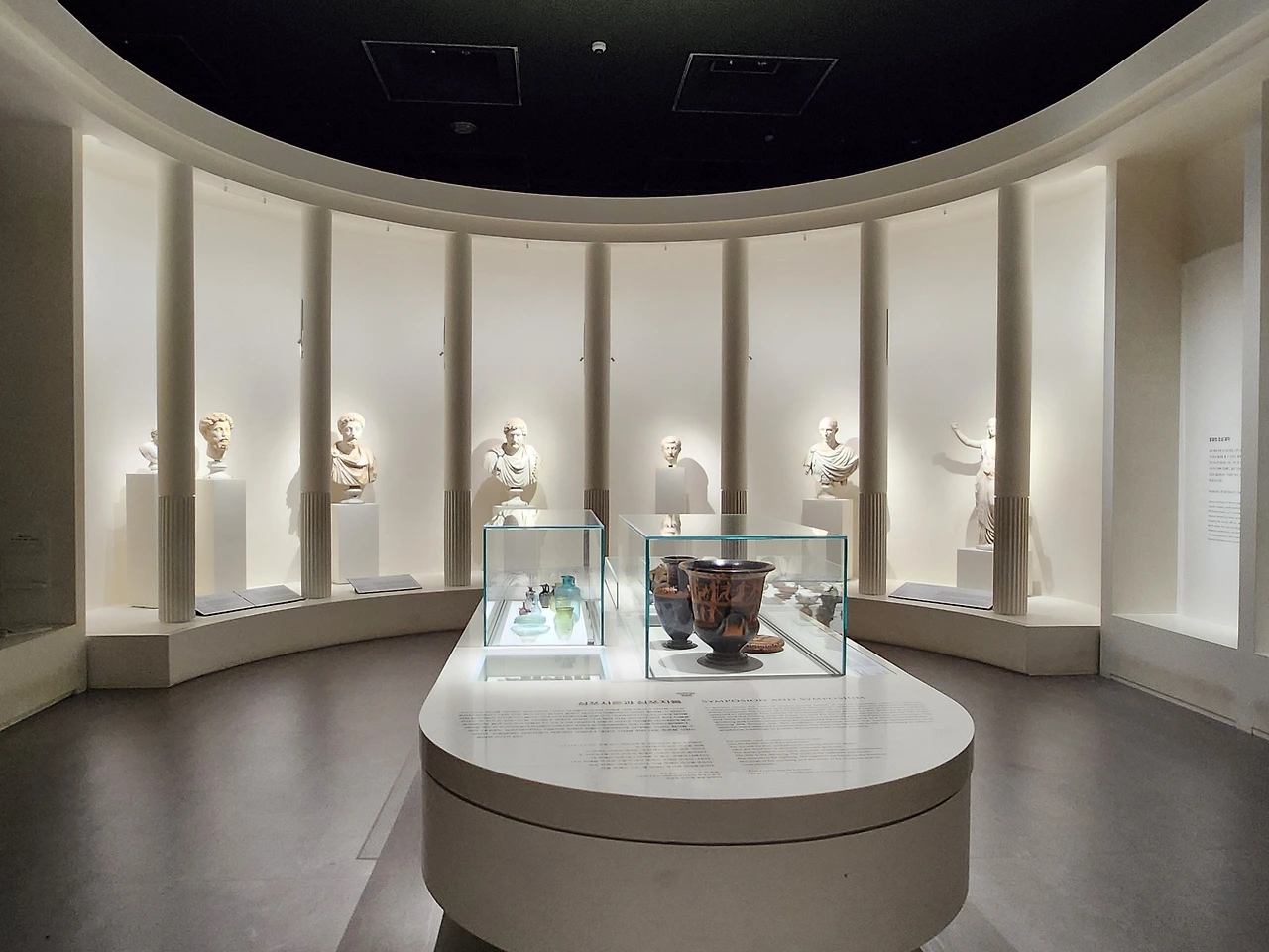 우리는 박물관 오픈 시간에 도착했다. 로비를 둘러본 다음, 바로 3층 세계문화관으로 갔다. 세계지리에 관심이 많은 아들 때문에 꼭 세계문화관을 들르게 되는데 상설전시관이어도 전시 내용이 자주 교체되어서 매번 방문해도 새로운 전시가 있어서 좋다. 지금은 그리스 로마 신화를 중심으로 전시를 하고 있다. 초등학생들에게 인기 있는 주제라 그런지 어린이용 사설 전시해설팀이 많이 있었다.