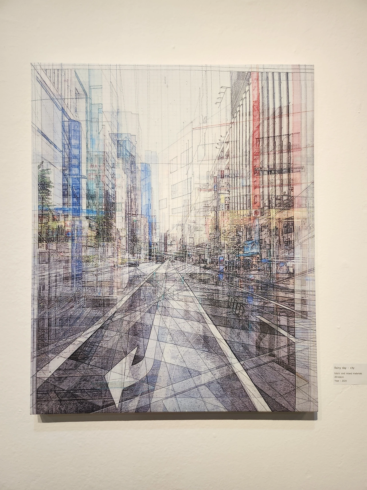 홈페이지 상으로는 무슨 전시인지 잘 몰랐다. 평범한 그림 같은데, 실물을 보면 이것은 퀼트 작품이다! 한 땀 한 땀 바느질로 만든 작품. 그 정교함에 감탄하게 된다. 청바지 화가 최소영 작품도 떠오르게 하고.
