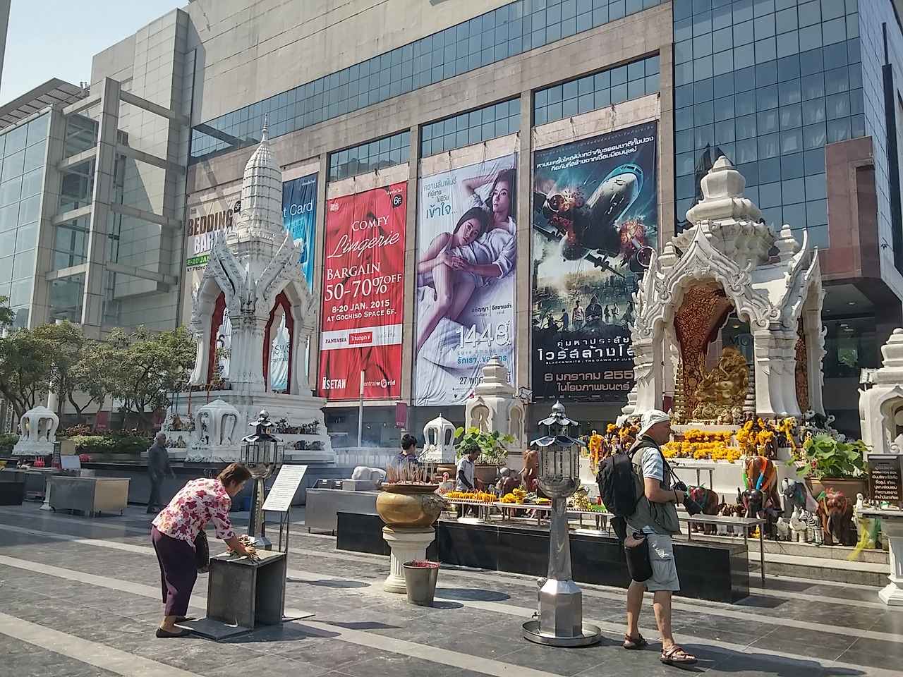 할리우드 극장과 힌두교 가네샤 제단이 나란히 자리한 모습은 인상적이었다. 서로 다른 두 문화가 한 공간에 자연스럽게 녹아든 풍경은 방콕의 독특한 매력을 보여준다.