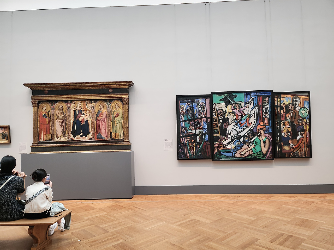 르네상스 회화관은 일반적으로 국제 고딕 양식부터 시작된다. 그런데 이곳엔 고딕 회화 옆에 신즉물주의 화가 베크만의 작품이 함께 전시되어 있어서 신선한 충격을 주었다. 베크만은 후기 고딕의 표현주의 양식과 제단화 형식에 영향을 받아 3단 제단화 형식을 즐겨 사용한다. 이론적으로만 알고 있는 이 미술사적 연결고리를 실제 작품의 배치를 통해 눈으로 확인하니 그 감동이 훨씬 강렬했다.