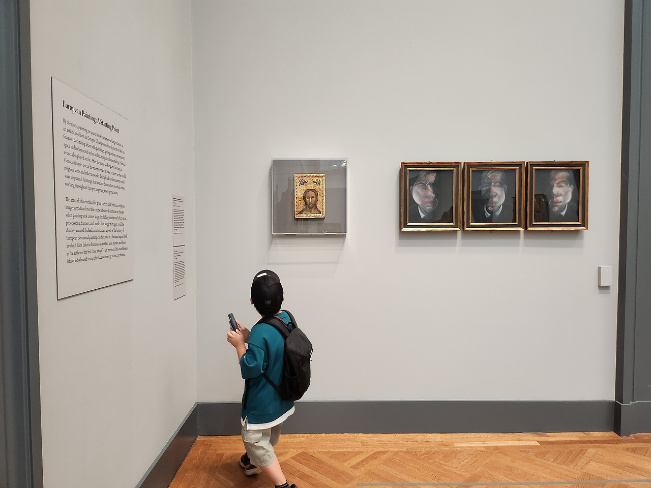 그 옆에는 현대 구상회화 작가 프랜시스 베이컨의 작품도 있었다. 베이컨은 밑그림 없이 캔버스에 직접 물감을 올리고, 손이나 헝겊으로 거칠게 문지르며 우연 속에서 필연적인 형상을 만들어 낸다. 이 거칠고 표현주의적인 작품이 고딕 회화와 나란히 놓이니, 베이컨의 기괴한 아름다움이 어디에서 기인했는지 이해가 되었다.