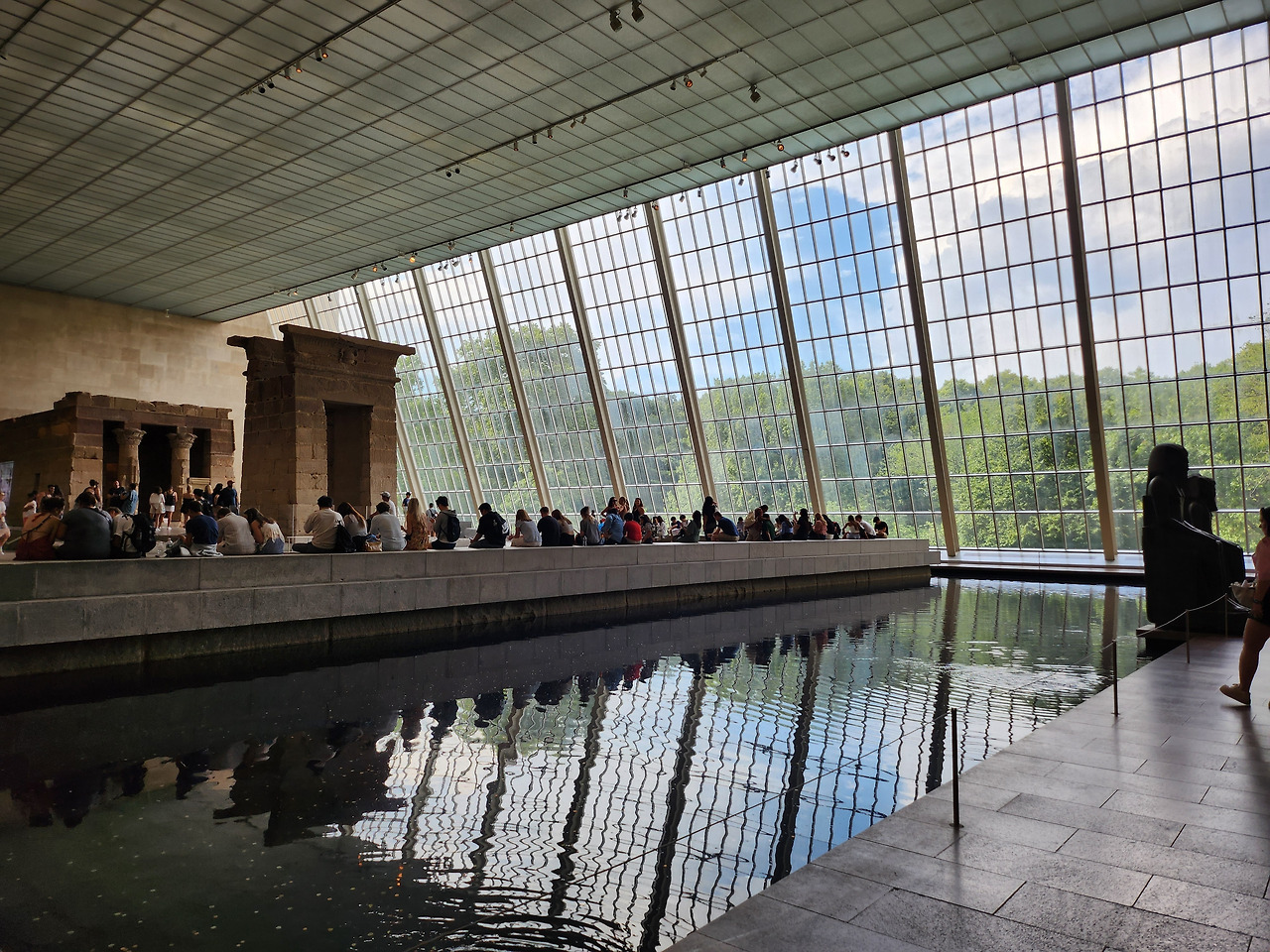 이집트 관 입구에 있는 덴두르 신전 전시 공간은 정말 압도적이다. 거대한 유리창 너머로 쏟아지는 햇살과 신전 주변의 잔잔한 물은 마치 나일강변을 연상시킨다.