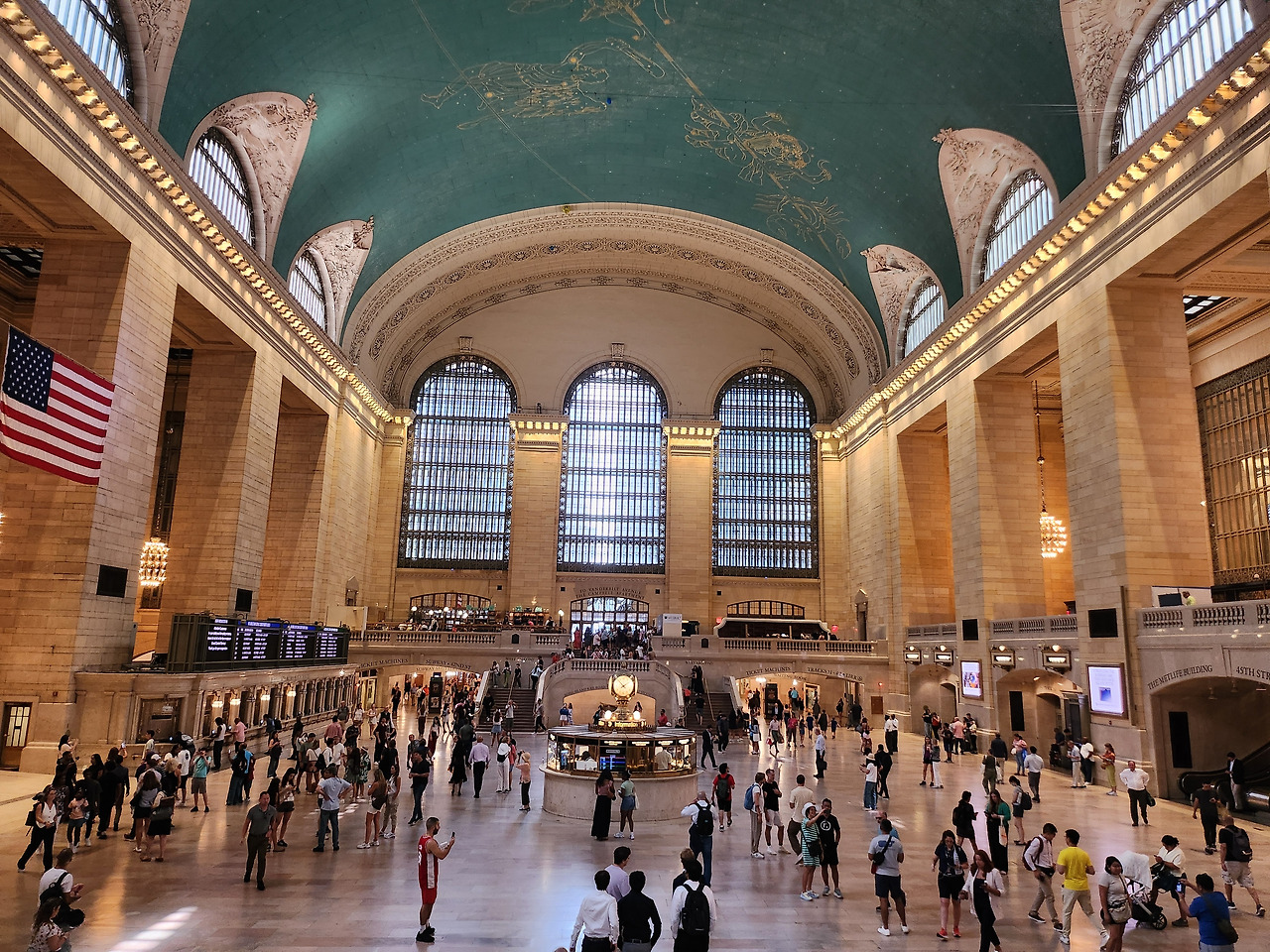 예약 시간까지 여유가 있어 인근 그랜드 센트럴 터미널(Grand Central Terminal)에 들렀다. 높은 천장과 넓은 공간, 우아한 인테리어, 그리고 천장의 별자리 조명이 인상적인 보자르 양식의 건축물이다. 이곳은 BTS의 ‘ON’ 뮤직비디오 촬영지로도 유명하다.