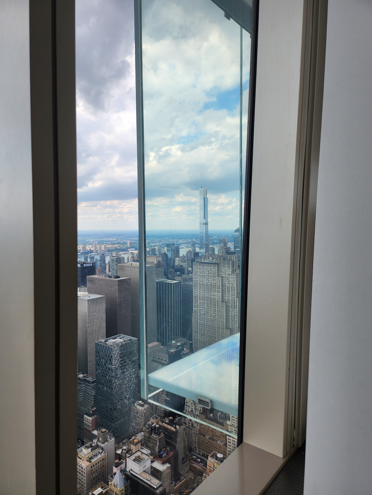 오후 2시 30분 예약 시간에 맞춰 서밋에 도착했다. 입장 시 신분 검사가 꽤 철저했는데, 9·11 테러 이후 보안이 한층 강화되었다고 한다. 보안 검색대 대기 줄이 길어 예상보다 시간이 조금 더 걸렸다. 서밋 원 밴더빌트는 2021년에 문을 연 비교적 새로운 뉴욕 전망대다. 단순히 고층에서 풍경을 보는 것을 넘어, 다양한 체험 요소와 포토존이 마련되어 있어 아이들과 함께하거나 SNS용 사진을 남기기에 좋다. 전망대는 91층부터 93층까지 이어진다.