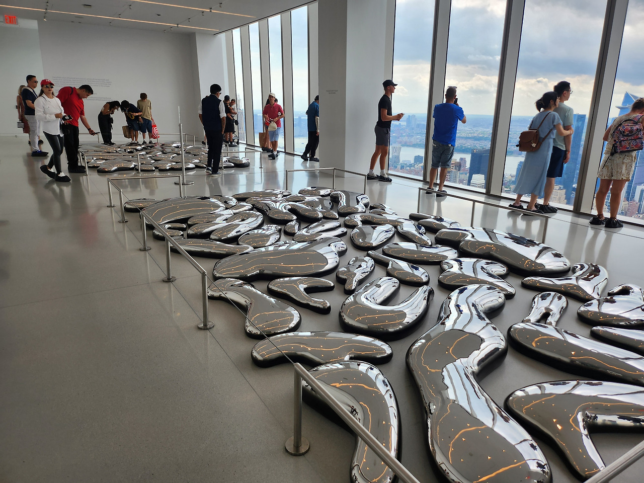 91층의 또 다른 공간에는 쿠사마 야요이(Yayoi Kusama)의 작품이 전시되어 있다. 쿠사마 야요이는 반복되는 물방울무늬로 유명한 현대미술 작가이다. 이 전시 공간은 서밋의 분위기와 작가 특유의 스타일을 반영해, 빛과 반사가 어우러진 곡선 형태의 조형물로 구성되어 있다.