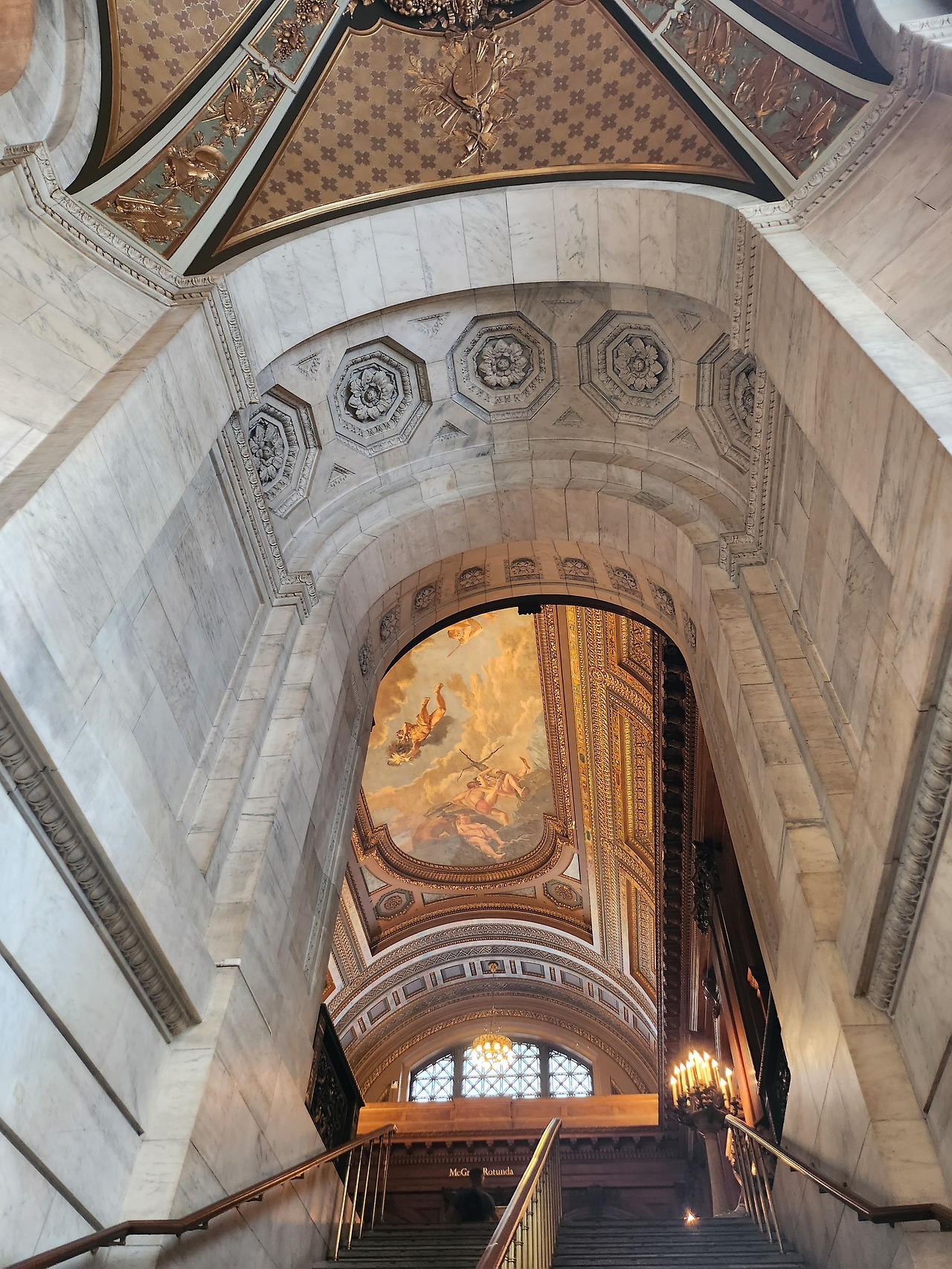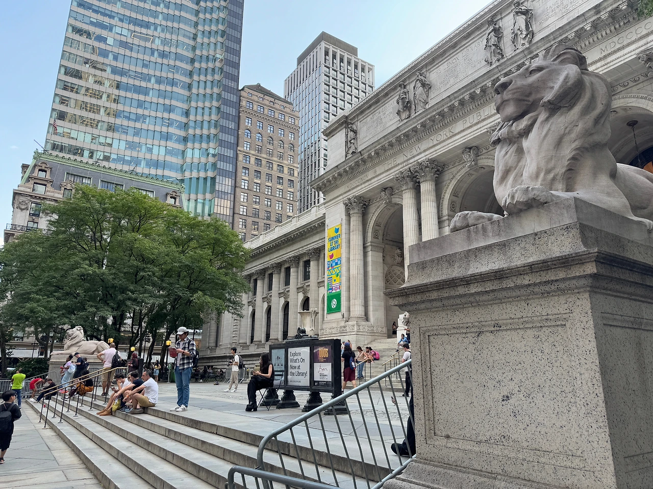 숙소로 돌아가는 길에 뉴욕공립도서관(New York Public Library)을 만날났다. 영화와 드라마 속 배경으로 자주 등장하던 바로 그 장소이다. 투어를 신청하면 내부를 자세히 둘러볼 수 있지만, 우리는 시간 관계상 간단히 구경만 했다. 보자르 양식의 건축물답게 도서관은 웅장하고 우아한 분위기를 풍긴다.