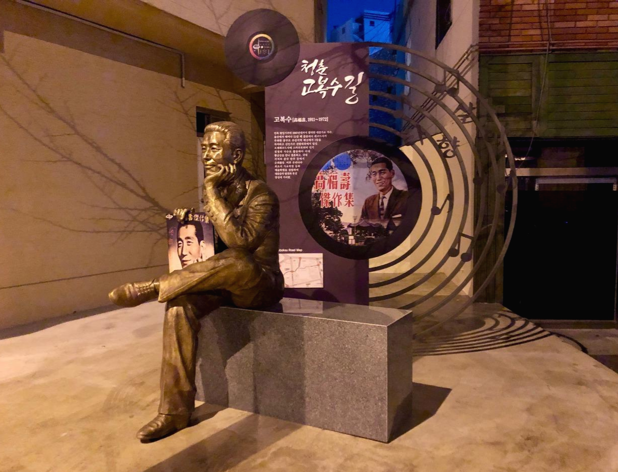 '청춘 고복수의 길'이라는 팻말이 보였다. 그 앞에 다리를 꼬고 앉아 있는 황색 동상이 턱을 바치고 있었다. 그는 1900년 초부터 중반까지 활약한 울산 출신의 대중가수였다. 국내와 중국 동북 3성에서 인기를 끈 가수라지만 이름만큼이나 그가 생소했다.