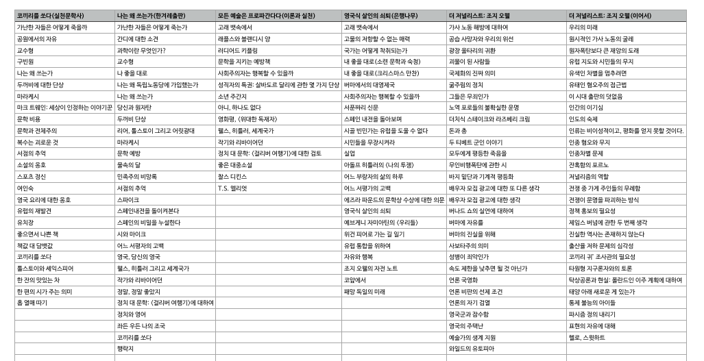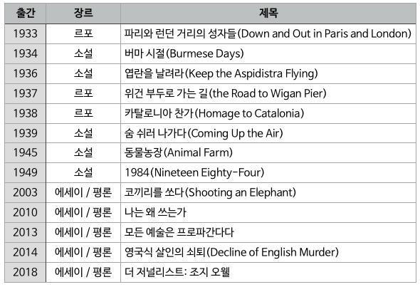 여기까지 오웰의 누구이며, 그의 작품 세계가 어떠한지 설명했다. 이제 읽는 순서를 안내한다. 뭐든 출간 순서대로 보는 게 좋다. 르포, 소설을 먼저 읽으시라. 국내 출판사가 에세이와 평론을 번역해 묶은 책은 나중에 보길 권한다. 그래야 작가의 변화를 이해하기 쉽다. 목록은 아래와 같다.