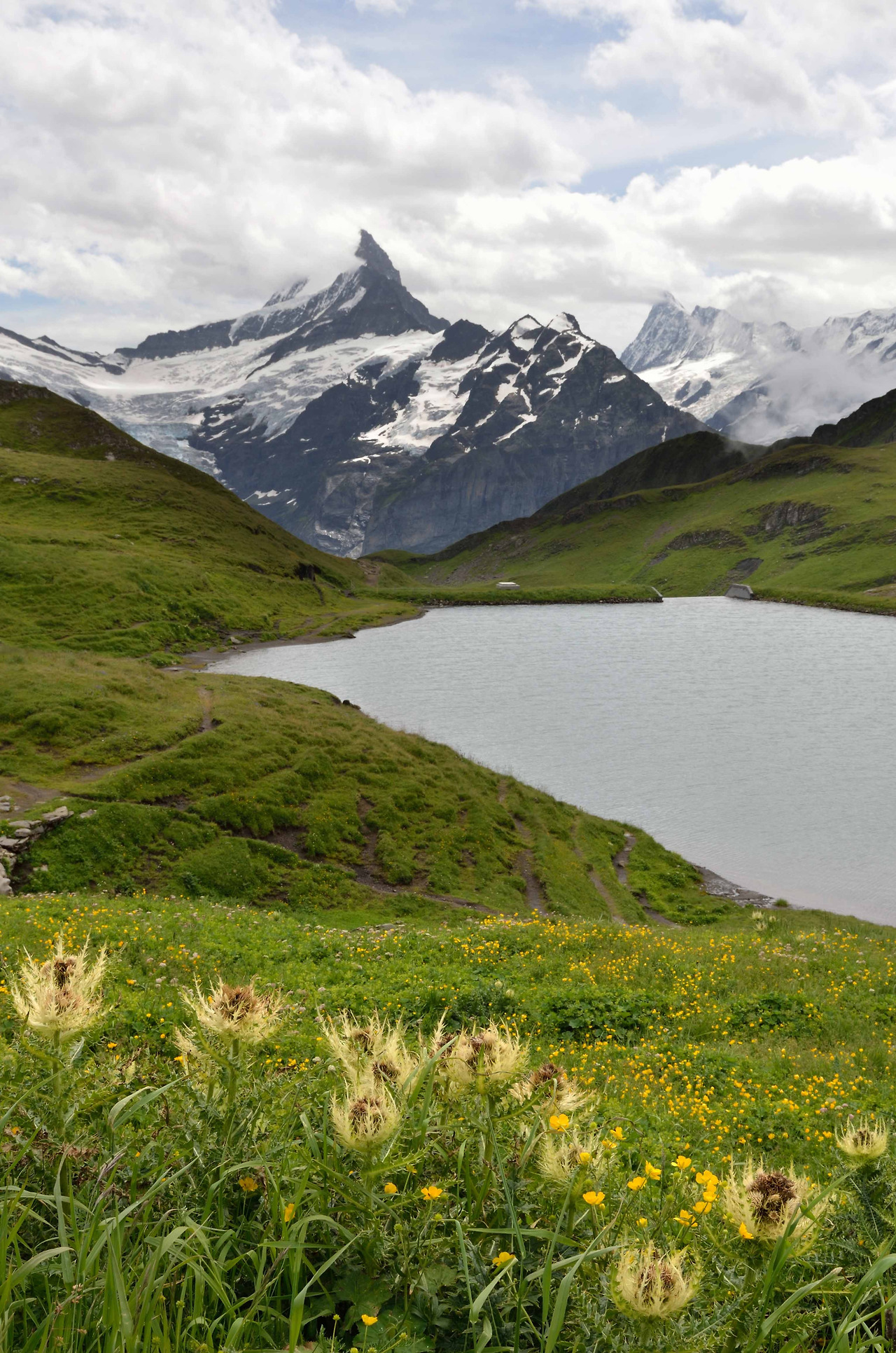 케이블카가 정상으로 다가갈수록 유리 표면에 붙은 물방울이 하나둘 떨어져 나갔다. ‘내가 언제 비 오는 날에 바칼르프(bachalpsee) 호수까지 가보겠어’ 주문을 다시 외웠다. 간간이 보슬비가 내렸지만, 살짝살짝 보여주는 알프스다운 풍경들은 주문이 필요 없게 했다. 바칼르프 호수에 다다랐을 때 기대했던 봉우리는 구름에 가려있었다. 주변을 둘러보니 조금 떨어진 곳에 조그만 오두막집이 보였다. 이곳에 오르는 동안 다른 여행객을 못 본 것처럼, 오두막집 안은 아무도 없었다. 모두가 나처럼 신공을 가진 건 아닌가 보다.