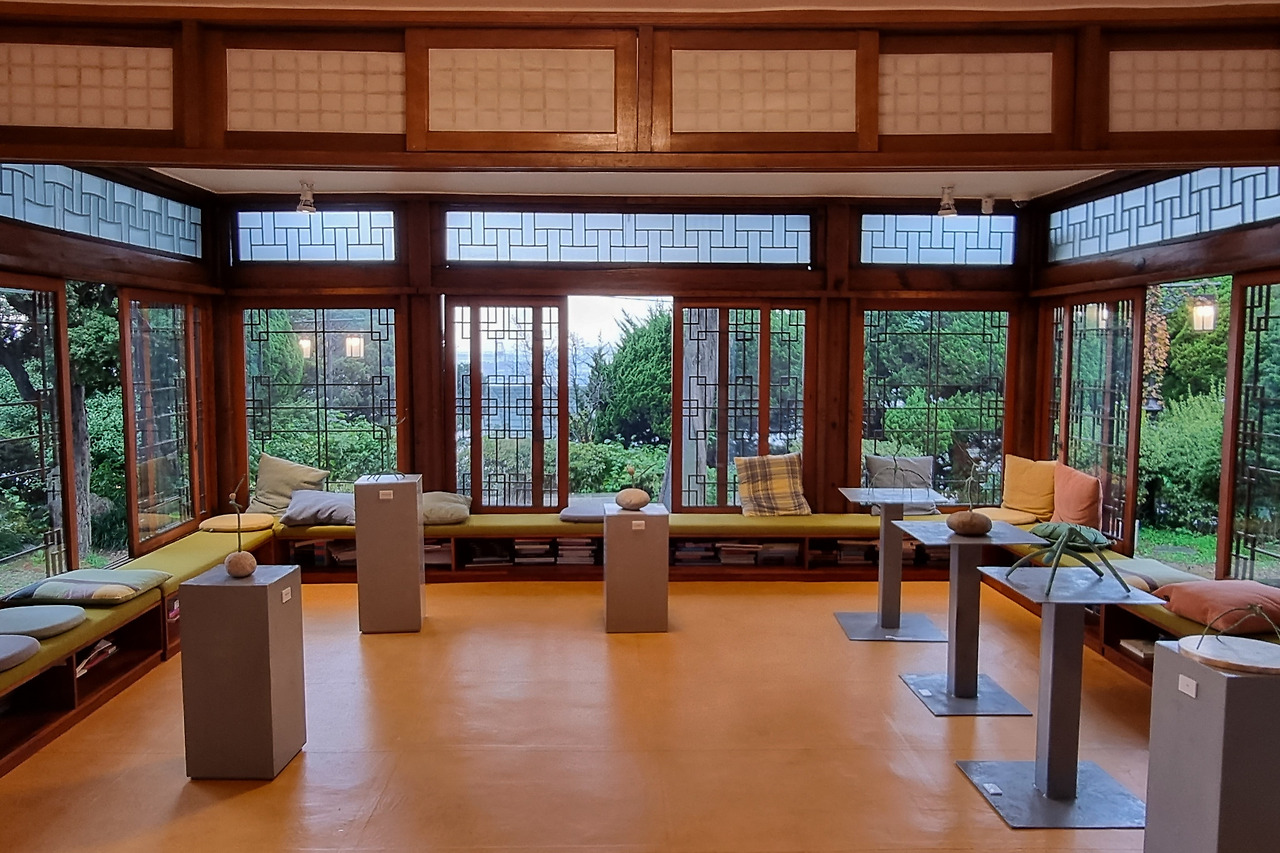 이 터의 변화는 우리네 근대사를 고스란히 담았다. 개항 이후 각국 조계지 지역으로 독일과 일본인 소유 주택이었고 해방 후 인천 예술인들의 모임터를 거처, 60년대 중반에 인천시장 관사로 사용하기 위해 지금 형태로 지어졌다. 이 공간을 오롯이 시민들에게 내준 지 사 년이 채 지나지 않았다. 돌계단 위 한옥 건물은 내부가 훤히 보인다. 외부와 소통하고픈 의지를 보여 주는 걸까? 사각 패턴 나무 창살에 한지 대신 유리를 덧댔다.
