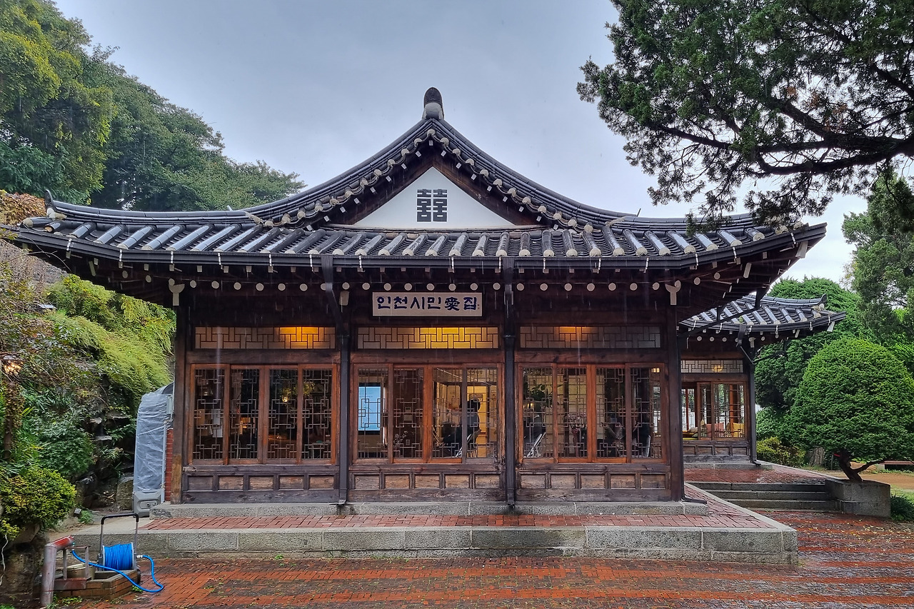 대청마루쉼터는 ㄷ자로 튀어나온 삼면이 한옥 창호 문양으로 된 통유리로 되어있다. 비 오는 날에도 채광이 좋다. 소파 밑에 놓여있는 인천역사 관련된 책들은 눈에 들어오지 않는다. <모던걸 모던보이의 근대공원 산책>이란 책 때문이다. 이곳과 어울리는 제목이다. 한두 페이지 넘기는데 저자는 내가 꽂힌 모던걸, 모던보이보다는 근대에 꽂혀 있는 듯하다. 근대공원과 관련된 흥미로운 책이지만 지금 읽고 싶지는 않다. 다시 제자리에 꽂아 놓는다.
