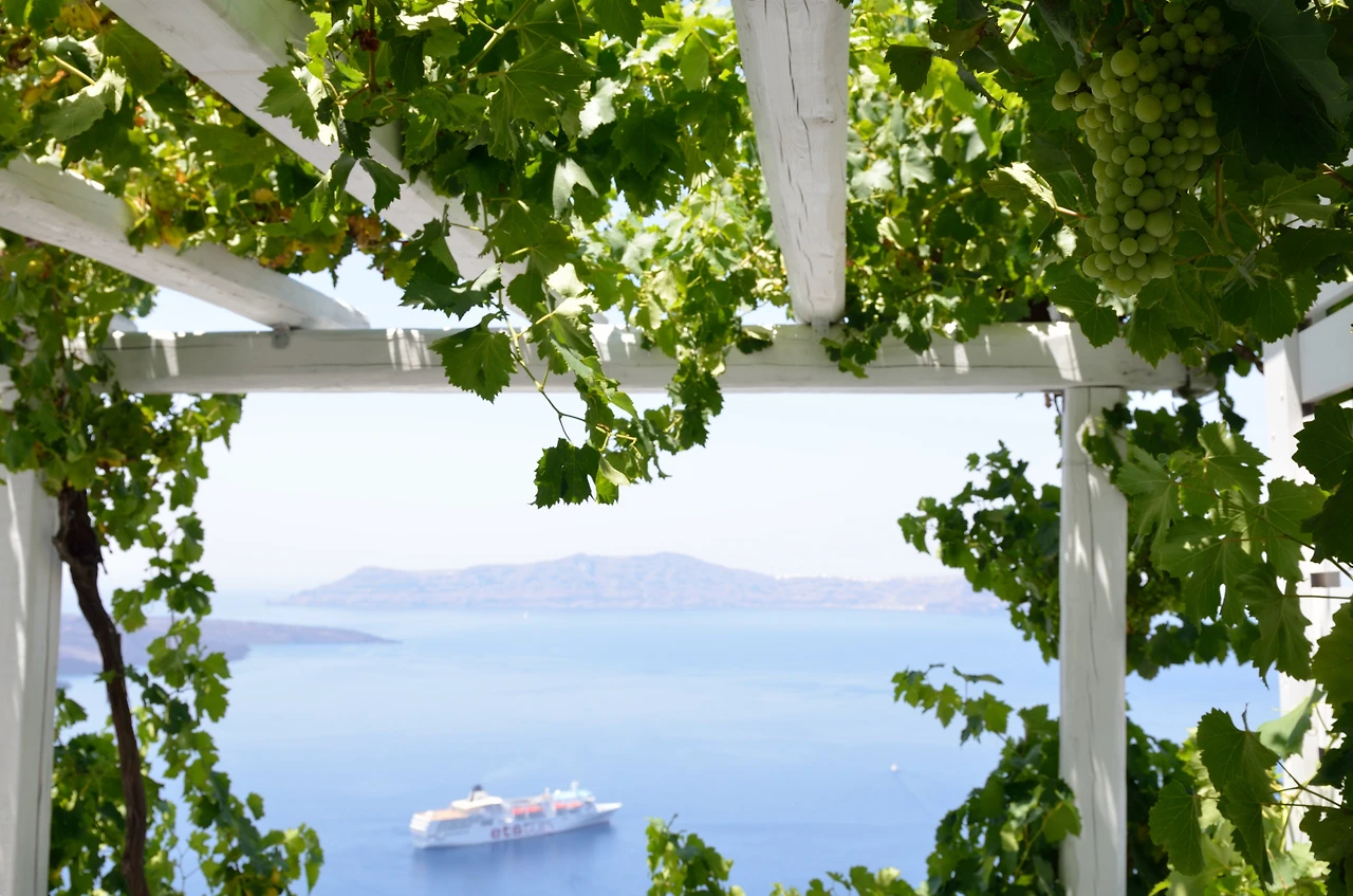 오 분쯤 절벽 위 골목 사이로 헤집고 다녔을 때 호스트가 걸음을 멈췄다. 우리 의견은 필요 없다는 듯 새 호스트에게 우리를 떠넘기고 골목 속으로 사라졌다. ‘그래 하룻밤인데 어디든 잠만 자면 되지.’ 문을 열고 들어온 숙소는 상상하지 못한 풍경이 펼쳐졌다. 산토리니 숙소를 예약 사이트에서 정신없이 찾을 때 잠시 머물러 있다가 가격을 보고 이내 다른 숙소로 스트롤 했던, 신혼부부가 와도 손색없을 하얀 동굴 속 침실과 함께 에메랄드빛 수영장이 나를 놓치지 말라는 듯 빼꼼히 쳐다보고 있었다. 탐스럽게 열린 청포도 사이로 에게해 위에 떠 있는 화산섬도 보였다. 당장 안내한 호스트를 찾아 고맙다고 팁이라도 주고 싶었다. 이래서 호스트가 당당했구나. 기분 좋은 반전으로 팬심을 저버리지 않은 산토리니의 마술 같은 하루가 만들어진 순간이었다.