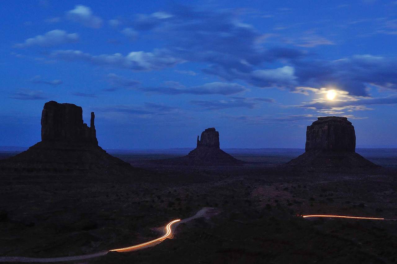 그렇게 거인이 나타난 곳마다 못 본 척 스쳐가지 못했기에 모뉴먼트 밸리의 일몰을 결국 놓쳐버렸다. 똑딱이 카메라와 함께하며 이런 좋은 점이 있을 줄. 기대하던 풍경을 놓쳐도 크게 아쉽지 않았다. 어차피 똑딱이로 찍어서 대단한 작품이 나올 것 같지도 않았고, 분명 언젠가는 제대로 된 장비를 챙겨 들고 다시 올 거로 생각했다. 이미 사막의 맑은 공기를 가르고 있는 달빛만이 모뉴멘트 밸리를 비추고 있었다.