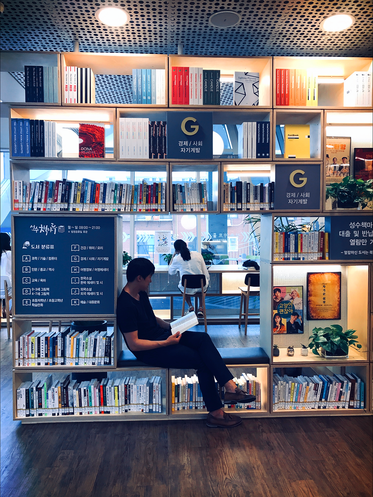 요즘 근무에 치여 바삐 지내오다가 오랜만에 다음 프로젝트 때문에 성수동 건축 답사를 계획한 날입니다. 운생동 장윤규 건축가가 설계한 사회복지관(2013년 서울시 건축상, 2014년 한국 건축문화대상 우수상을 수상한 공공건축물)에 잠시 들렀습니다. 저층부 계단을 통해 올라간 도서관에서 제 취향을 저격하는 책을 고르고, 이 공간에서 편안하게 읽을 수 있는 시간이 참 좋았습니다. 그래서 도서관 건축물 답사를 다닐 때마다 가볍게 책 한 권 읽으면 마음이 편안해지고, 이 공간을 만들었던 건축가의 의도에 대해서도 많이 생각하게 되네요.
