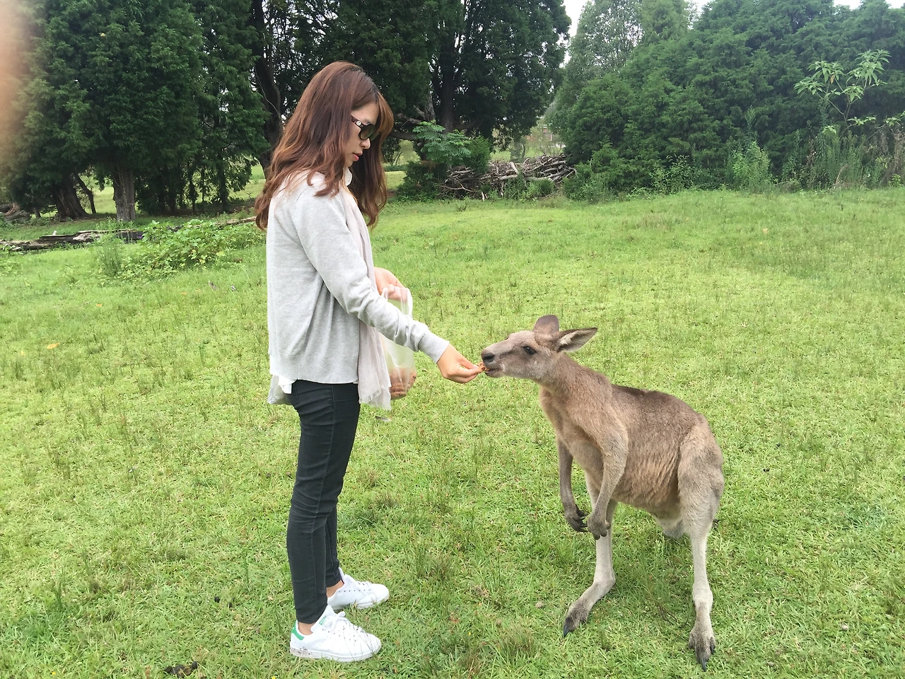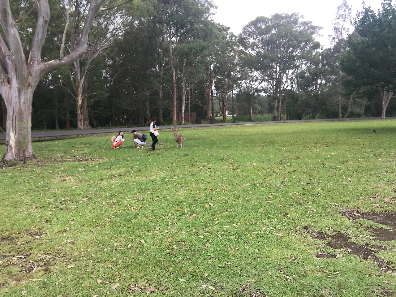 그리고 이제 캥거루를 마음껏 보고 싶은데 시드니 근교로 나가면 모리셋파크(Morisset Hopital Psychiatric Services) 라고는 곳에 야생 캥거루가 많이 있어서 먹이를 주면 사람에게 가까이 와서 만질 수 있다고 해서 우리도 도전적인 렌터카 오너에게 같이 가면 안 되겠냐고 부탁해서 일요일은 모리셋 파크를 가게 되었다. 모리셋 파크는 모리셋 정신병원 근처의 넓은 들과 숲이 우거진 공원이었다. 들어가기 전에 큰 도로에 콜스(Coles)가 있기 때문에 거기 가서 당근이나 바나나, 청포도 등 캥거루가 좋아하는 것을 사서 가면 된다. 가보니 대학생 같아 보이는 사람들이 버스를 타고 내려서 멀리서부터 걸어오기도 하고 자기 차나 렌터카를 빌려서 오는 사람들을 볼 수 있었다. 여러 블로그에서 당근을 가져가라는 말을 듣고 가져갔으나 당근은 이미 옛날이야기. 무리에 있는 캥거루 들이 무슨 먹이인가 보다가 당근이다 싶으면 뒤도 보지 않고 그냥 가버린다. 우리는 당근의 실패에 최근 블로그를 참고해야 했다고 한탄했다.