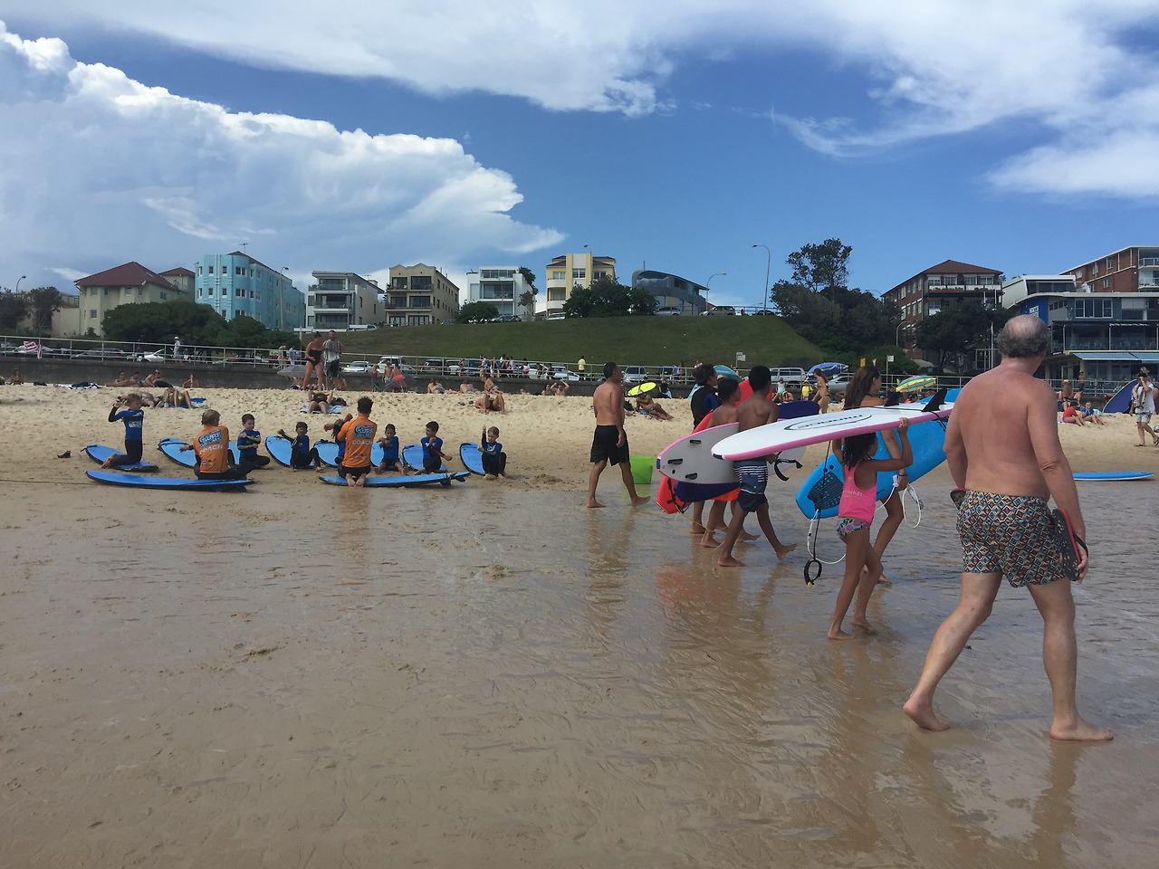 호주에서의 해변 물놀이 중에는 단연 서핑이다. 그리고 서핑하면 또 본다이다. 우리 연수생들 중에도 본다이에서 서핑코스를 등록해서 강습을 받은 사람도 있었다. 시드니에 왔다면 경험 삼아해야 할 과제 이긴 하나 나에게 너무 무리일 것 같아서 패스. 그러나 본다이 비치(Bondi Beach)에서 제대로 한번 즐기고 싶다면 하루짜리 서핑 강습도 해 볼만하다. 그리고 본다이 비치에는 상어 경보가 있다. 이유는 상어 떼가 나타났다는 경보가 울리면 물놀이 중 밖으로 나와야 한다. 말도 안 되는 이야기 같지만 정말 파도도 높고 상어 떼가 있어서 안전 가이드가 있고 그 안전 가이드 선 안에서만 놀아야 한다. 아무렇게 다 놀 것 같지만 나름 여기도 익명 피해를 막기 위한 기본 가이드라인이 있다는 사실이다. 그리고 가보면 전부 너나 할 것없이 비치 타올(beach towel)을 깔고 누워 있다. 호주는 오존층 파괴로 햇살이 따갑고 피부암 환자도 많다고 하는데 다들 그런 것에는 신경을 쓰지 않는 듯 선탠을 즐긴다. 텐트, 돗자리 파라솔 그런 것은 보기 드물다. 그러니 돗자리를 펴거나 파라솔, 미니 텐트를 친다면 다른 이의 이목을 집중시킬 것이다.
