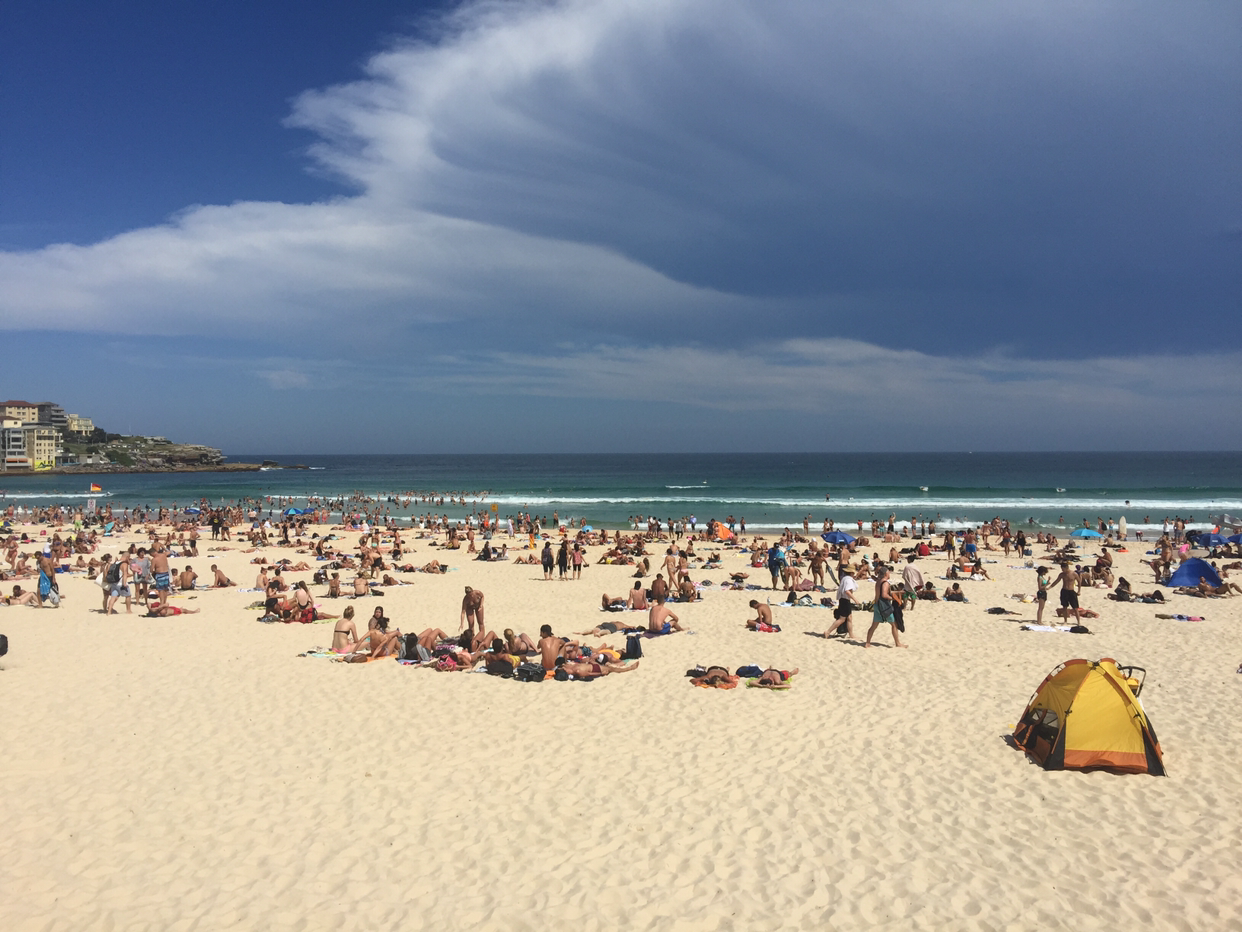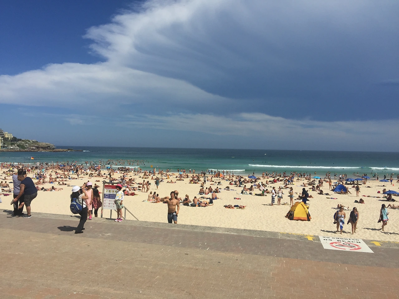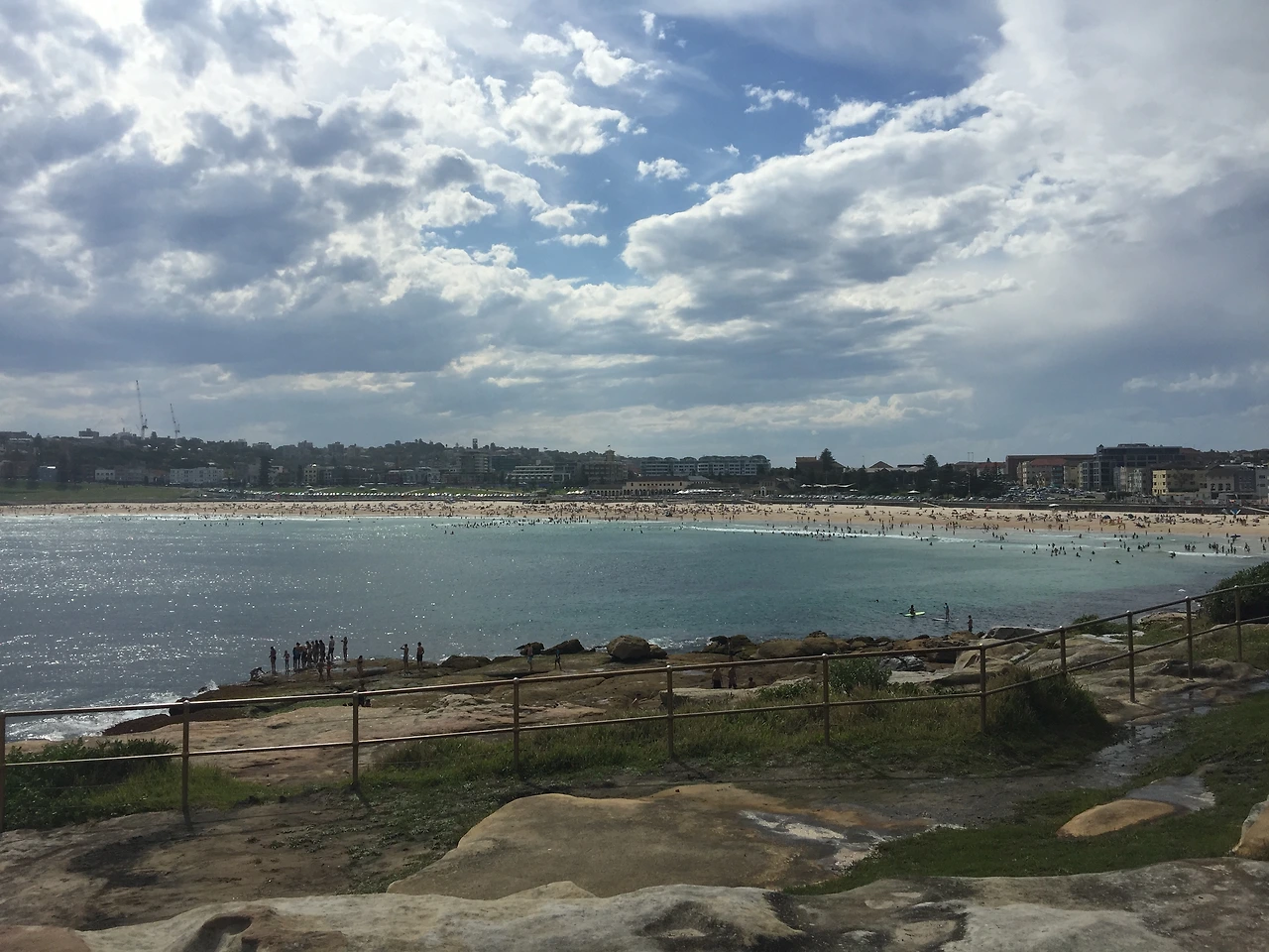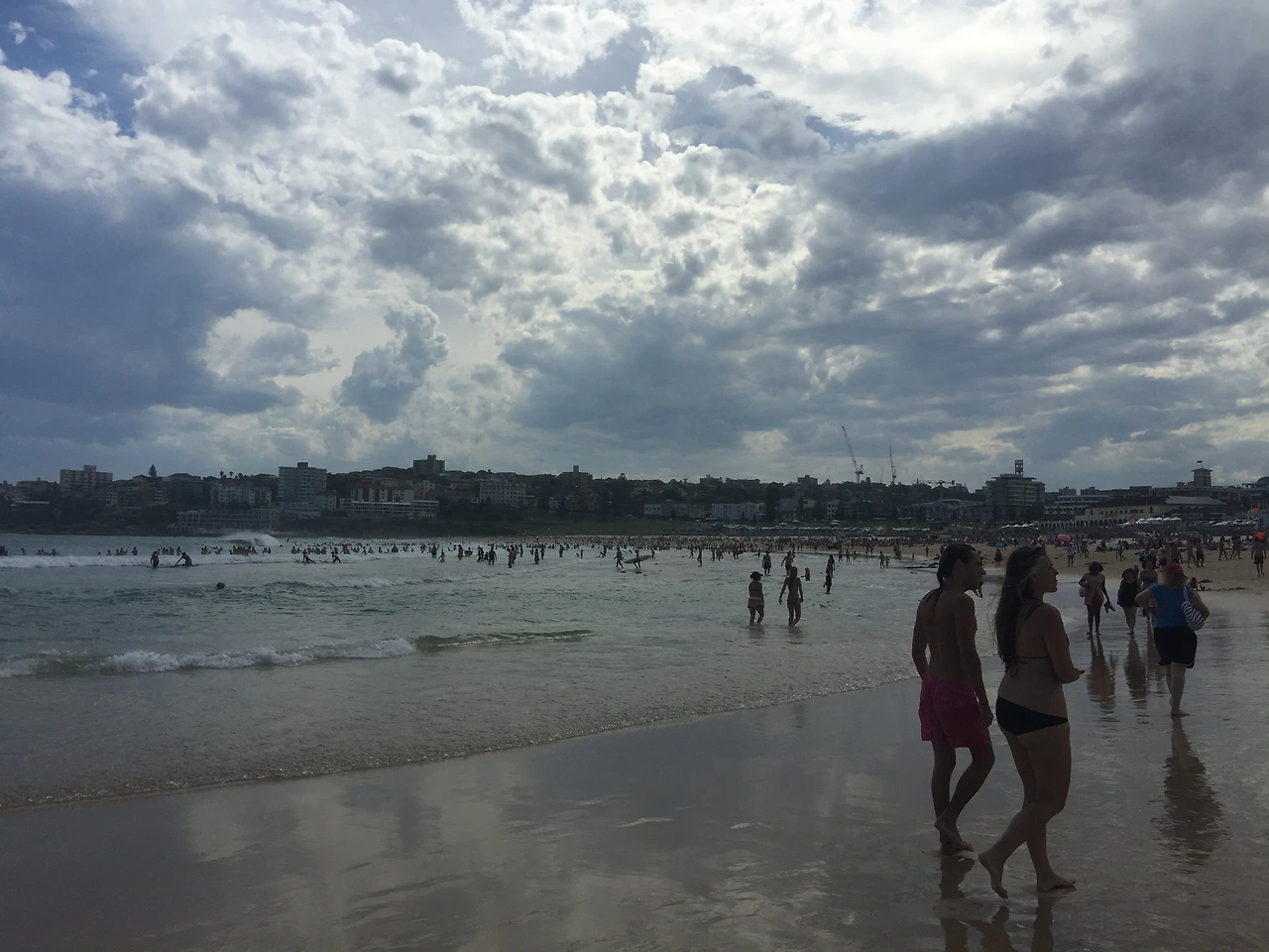시드니에 도착해서 처음으로 간 해변은 역시나 본다이이다. 명성만큼 넓게 백사장이 펼쳐져 있고, 드러누워 있는 사람들, 서핑하는 사람들로 가득차다. 역시나 햇볕은 정말 따갑다. 동양인이 한 시간만 여기에 있으면 특히 잘 타는 내가 여기 현지인 처럼 옷을 입고 물놀이를 했다면 새깜디가 되어 있기 딱 좋은 곳이다. 처음 가서는 그냥 걸어다니고 사진찍고 카페에서 차마시면서 사람들을 구경했다. 구지 물에 들어가지 않아도 근처에 카페가 많아서 그냥 사람구경만으로도 하루를 보낼 수 있는 곳이다.