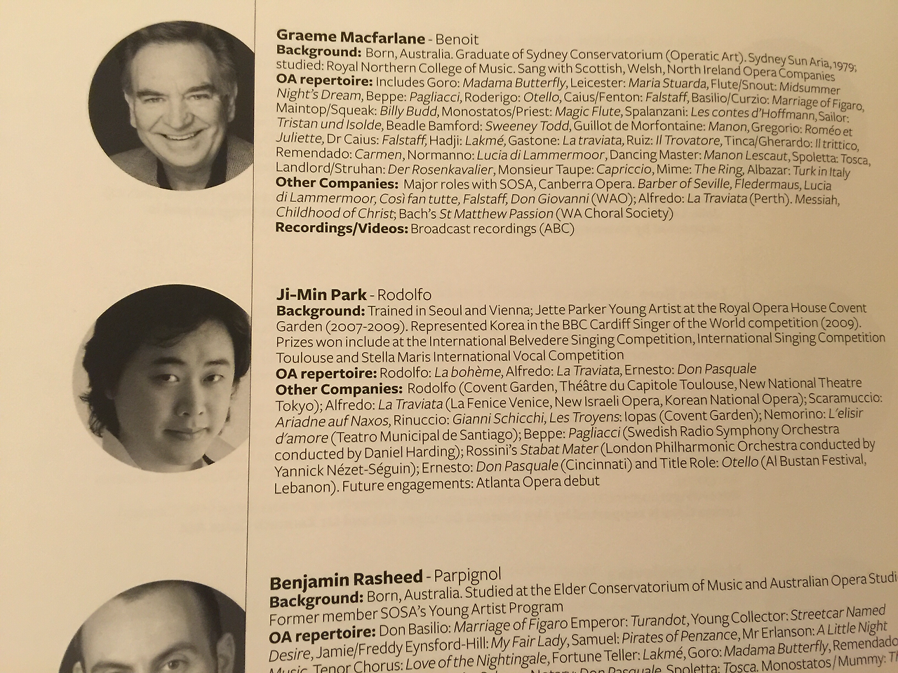 오페라 하우스에서 우리가 본 오페라는 라보헴이라는 푸치니 작품이다. 내용은 대충 젊은 예술가들의 사랑이야기 라도 할 수 있다. 내가 앉은 자리는 정말 무대랑도 가깝고 오케스트라와도 가까웠다. 공연이 시작되고 잘은 모르겠지만 다들 연기와 노래를 잘 하고 오케스트라와도 합이 딱딱 맞았다. 사실 오케스트라의 단원으로 참여해 본 경험이 있지만 노래와 오케스트라를 딱 맞추는 것은 쉬운 일이 아니다. 얼마나 많은 연습을 했을지 짐작이 되었다.