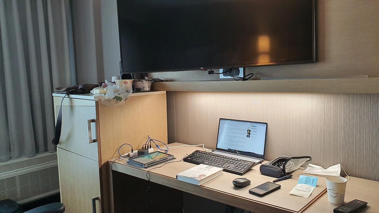 그러다 보니, 이게 안산에서 제가 업무를 보는 상황과 동일한 겁니다. 그 친구들은 제가 미국에 있는지 안산에 있는지 구분이 안되니까 SNS로 결재 상신했다고 하고, 의견도 물어보고, 단톡방에 초대해서 회의도 하고 심지어는 제가 결재 올라온 걸 보면서 줌 회의를 차 타고 가면서 하기도 하고.. 참나.. 이건 출장이 아니라 일을 두배 해야 하는 지옥의 행군이 되었습니다.